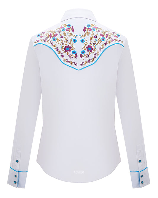Women's White Floral Embroidered Western Pearl Snap Shirt
