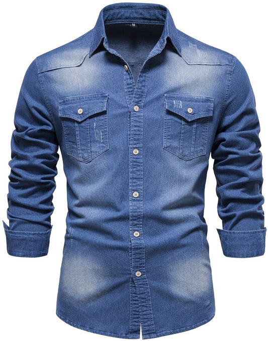Men's Derek Denim Long Sleeve Double-Breasted Button Up Shirt