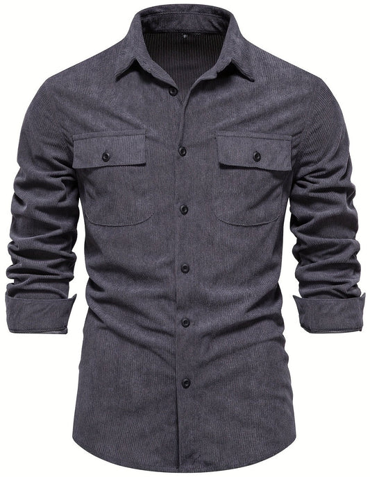 Men's Corduroy Long Sleeve Double-Breasted Button Up Shirt