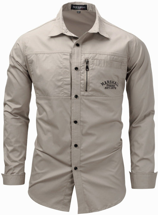 Men's Cotton Long Sleeve Single-Zip Button Down Shirt
