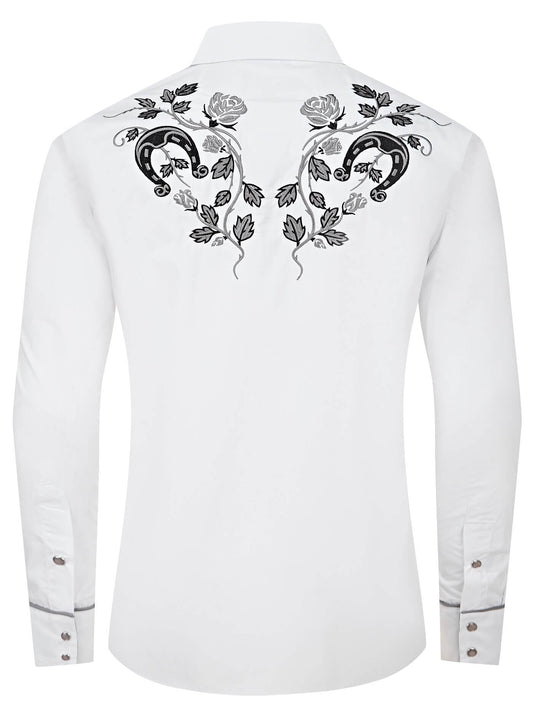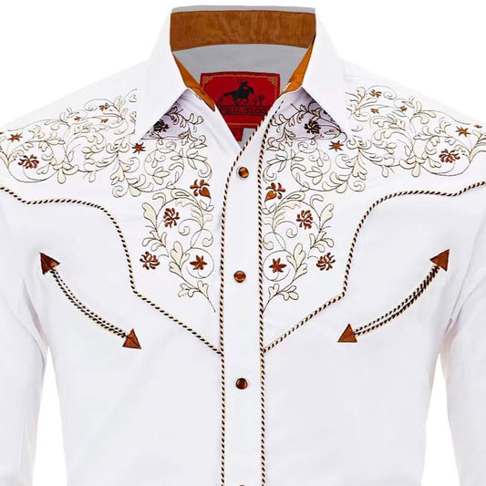 White Stallion Men's Embroidered Western Pearl Snap Shirt