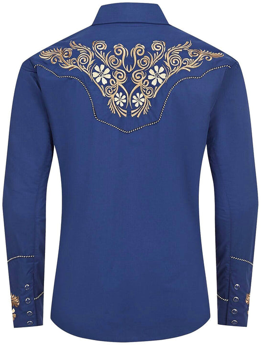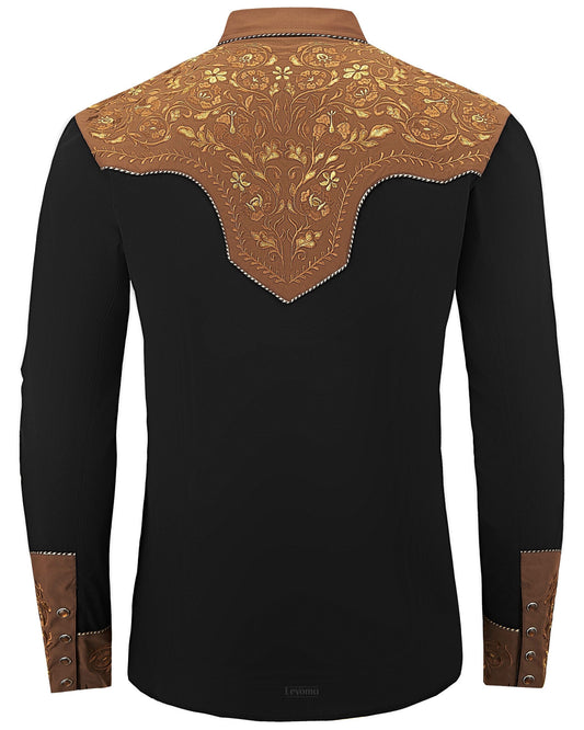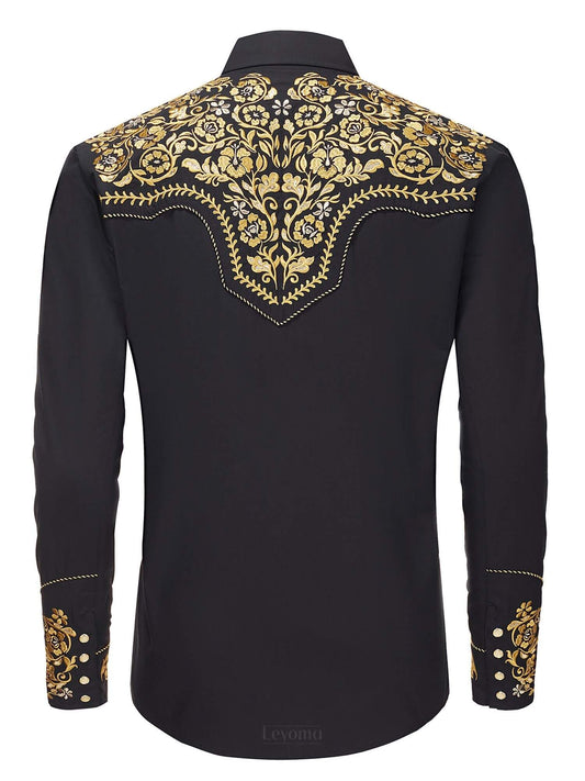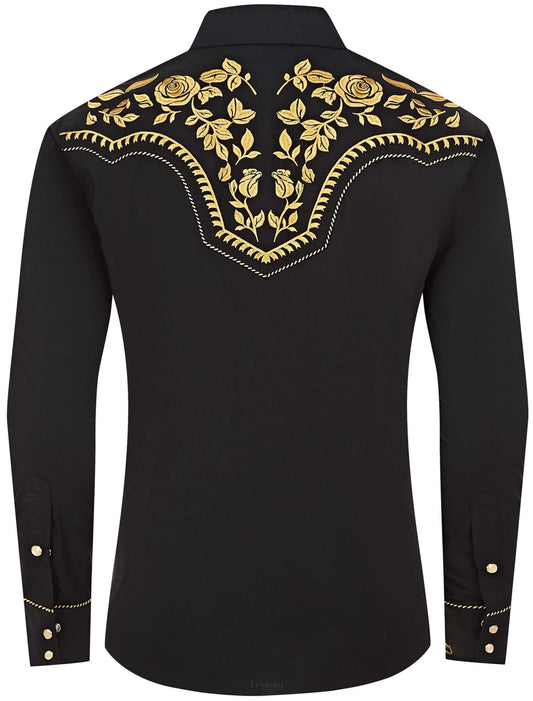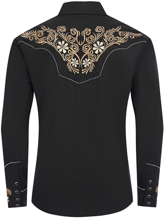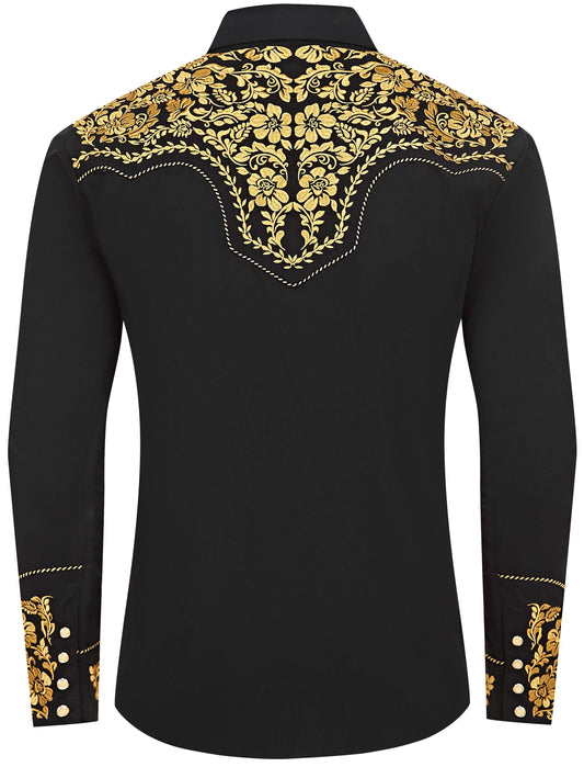The Gold Vaquero Men's Embroidered Western Pearl Snap Shirt