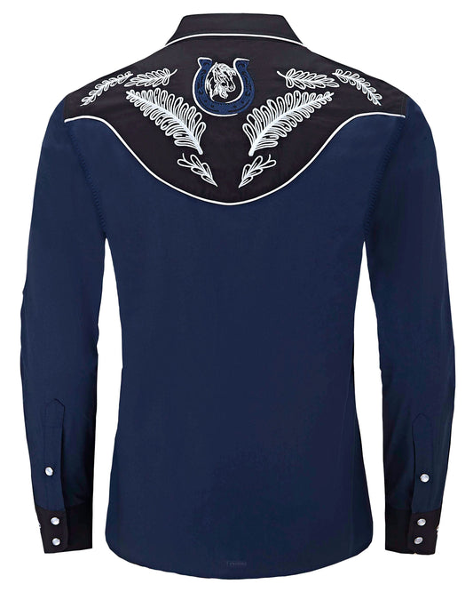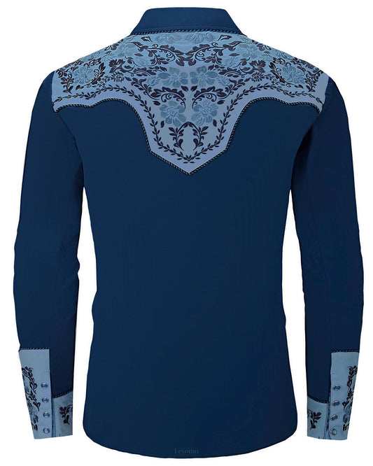 Admiral Blue Men's Embroidered Western Pearl Snap Shirt