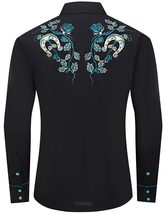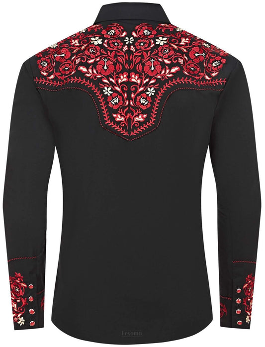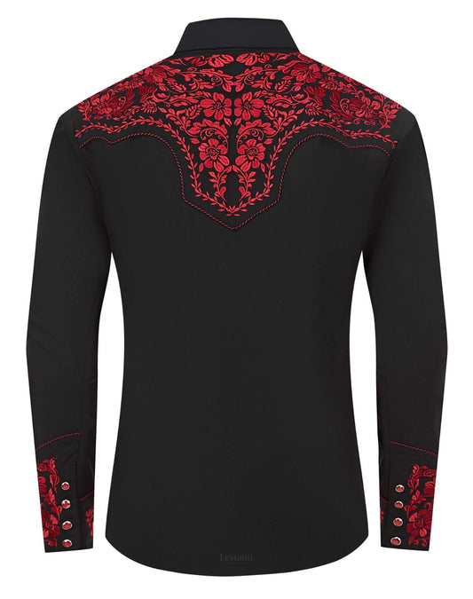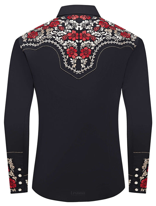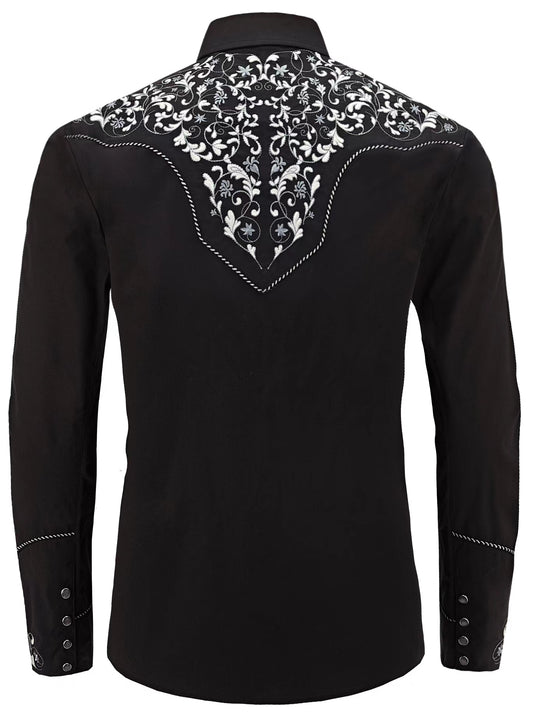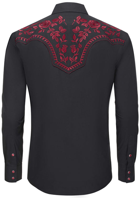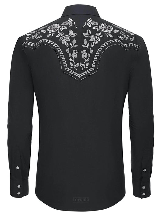 Midnight Rose Men's Embroidered Western Pearl Snap Shirt