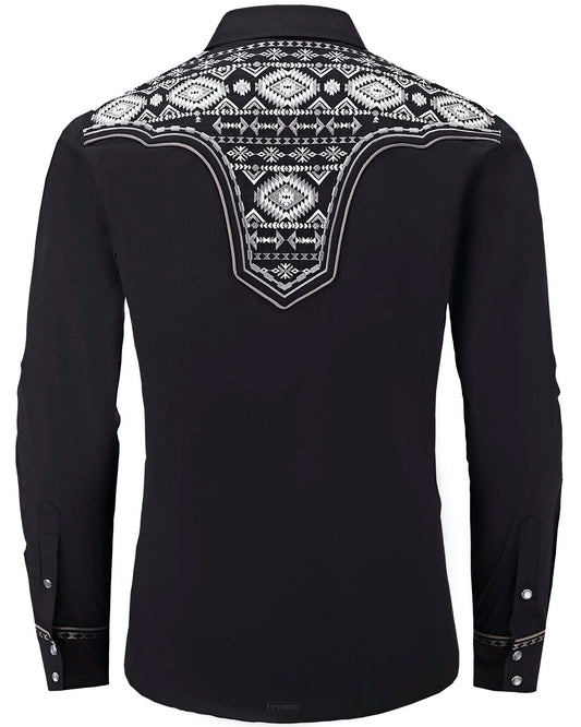 Aztec Crystal Men's Embroidered Western Pearl Snap Shirt