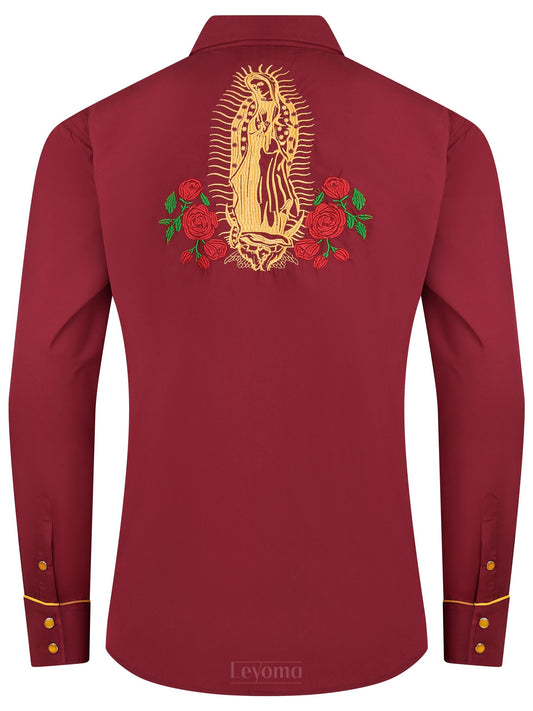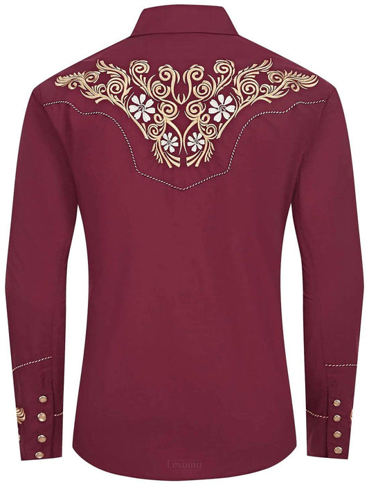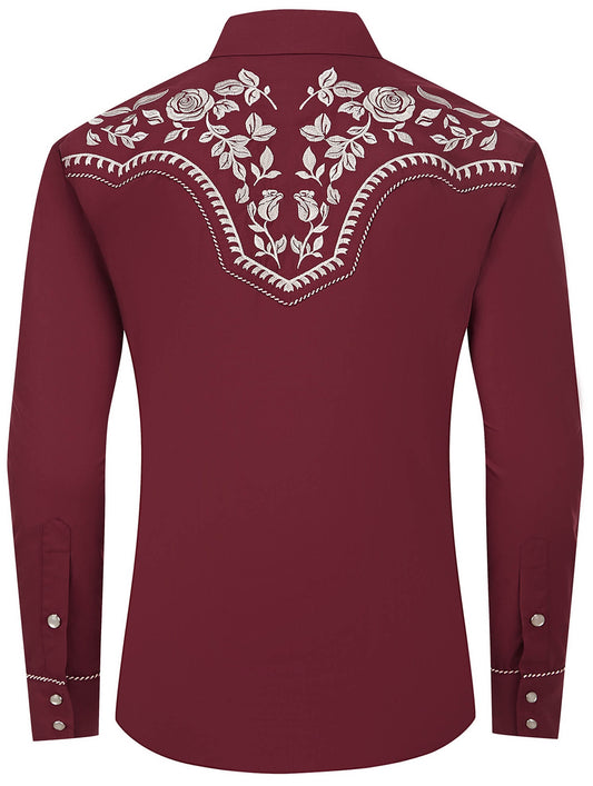 Mother Mary Ruby Men's Embroidered Western Pearl Snap Shirt