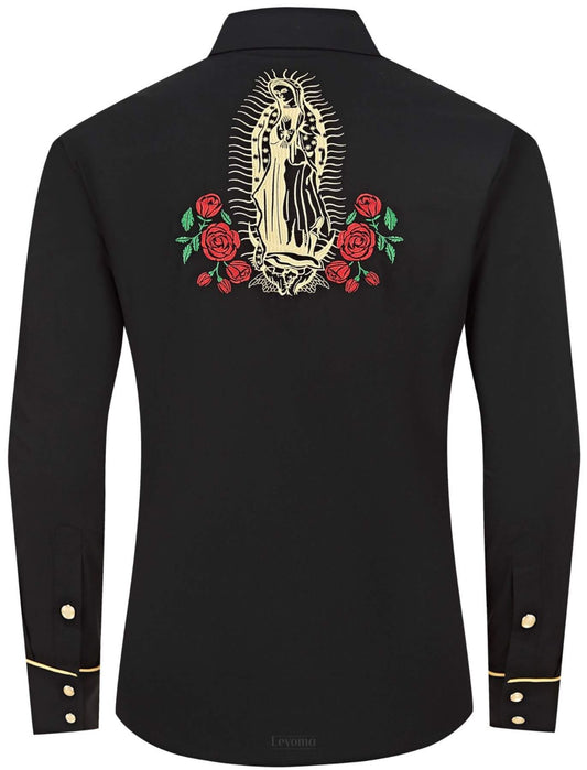 Mother Mary Black Men's Embroidered Western Pearl Snap Shirt
