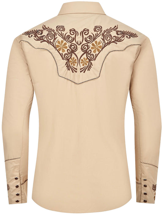 Bronze & Ivory Men's Embroidered Western Pearl Snap Shirt
