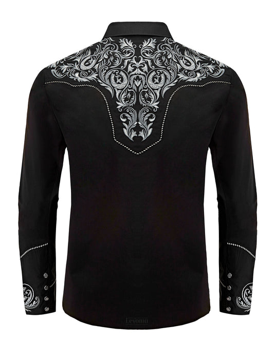The Lone Star Men's Embroidered Western Pearl Snap Shirt