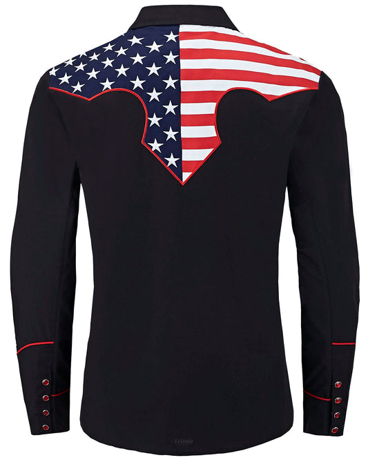 Stars & Stripes Black Men's Embroidered Western Pearl Snap Shirt