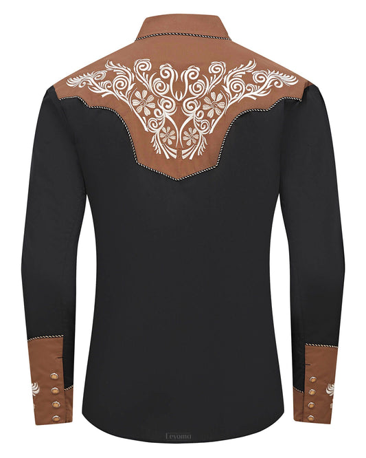 Saddle Brown Men's Embroidered Western Pearl Snap Shirt