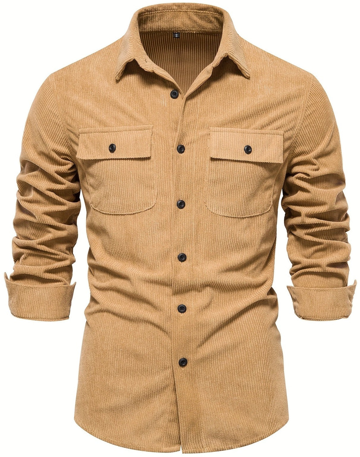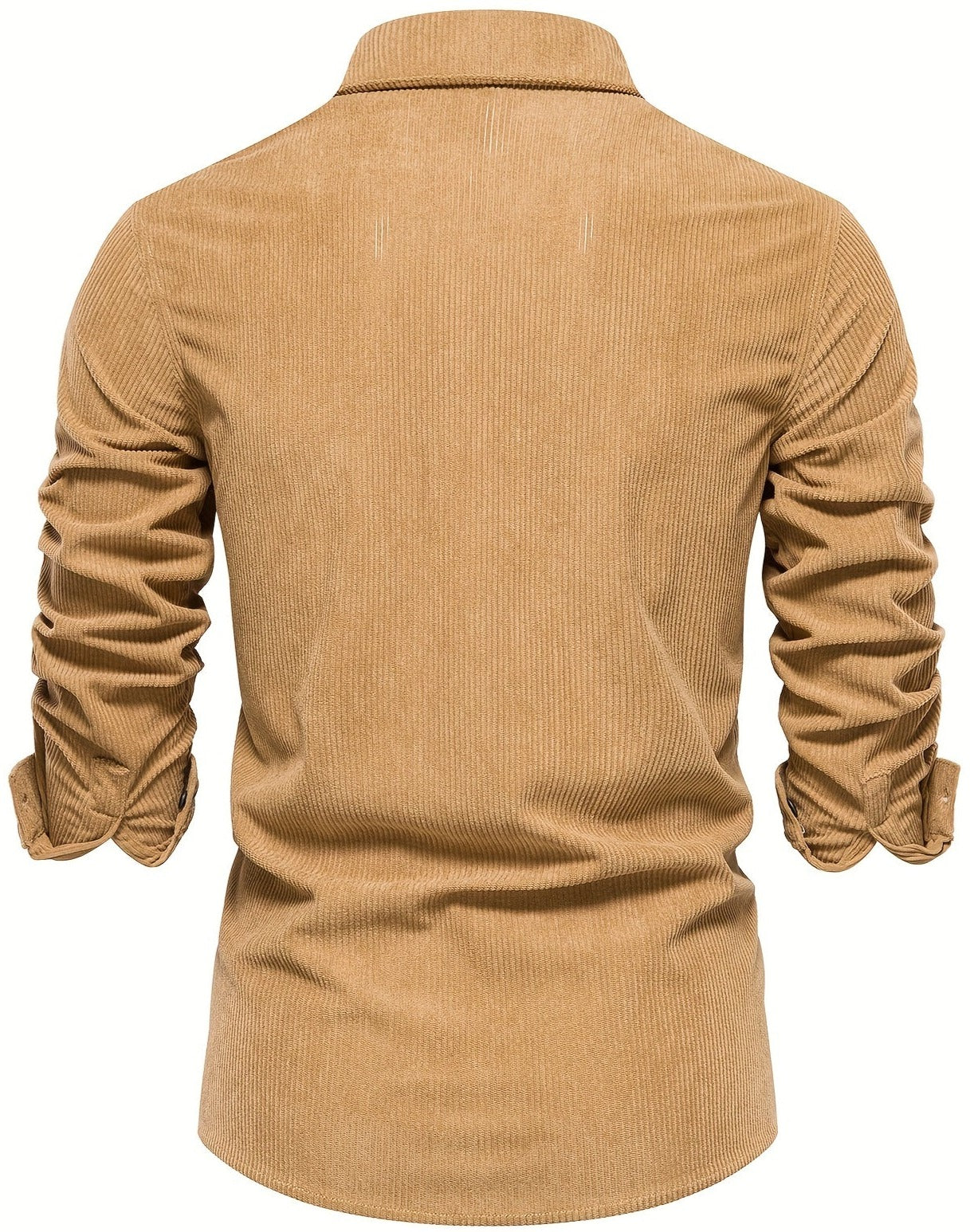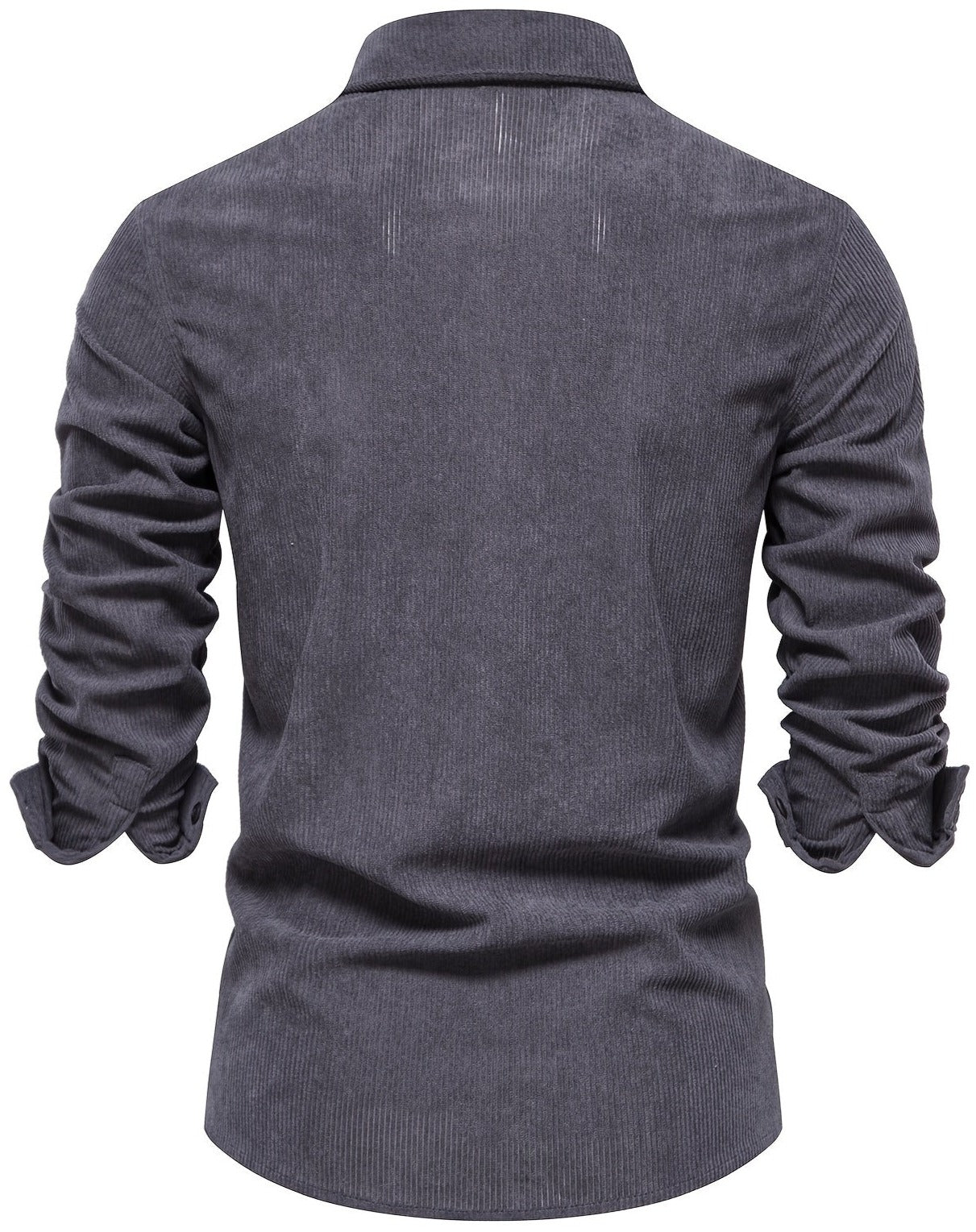 Chemise homme en velours côtelé à manches longues et double boutonnage