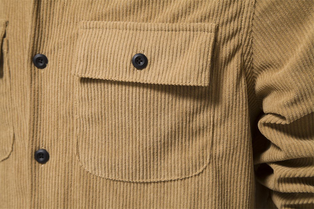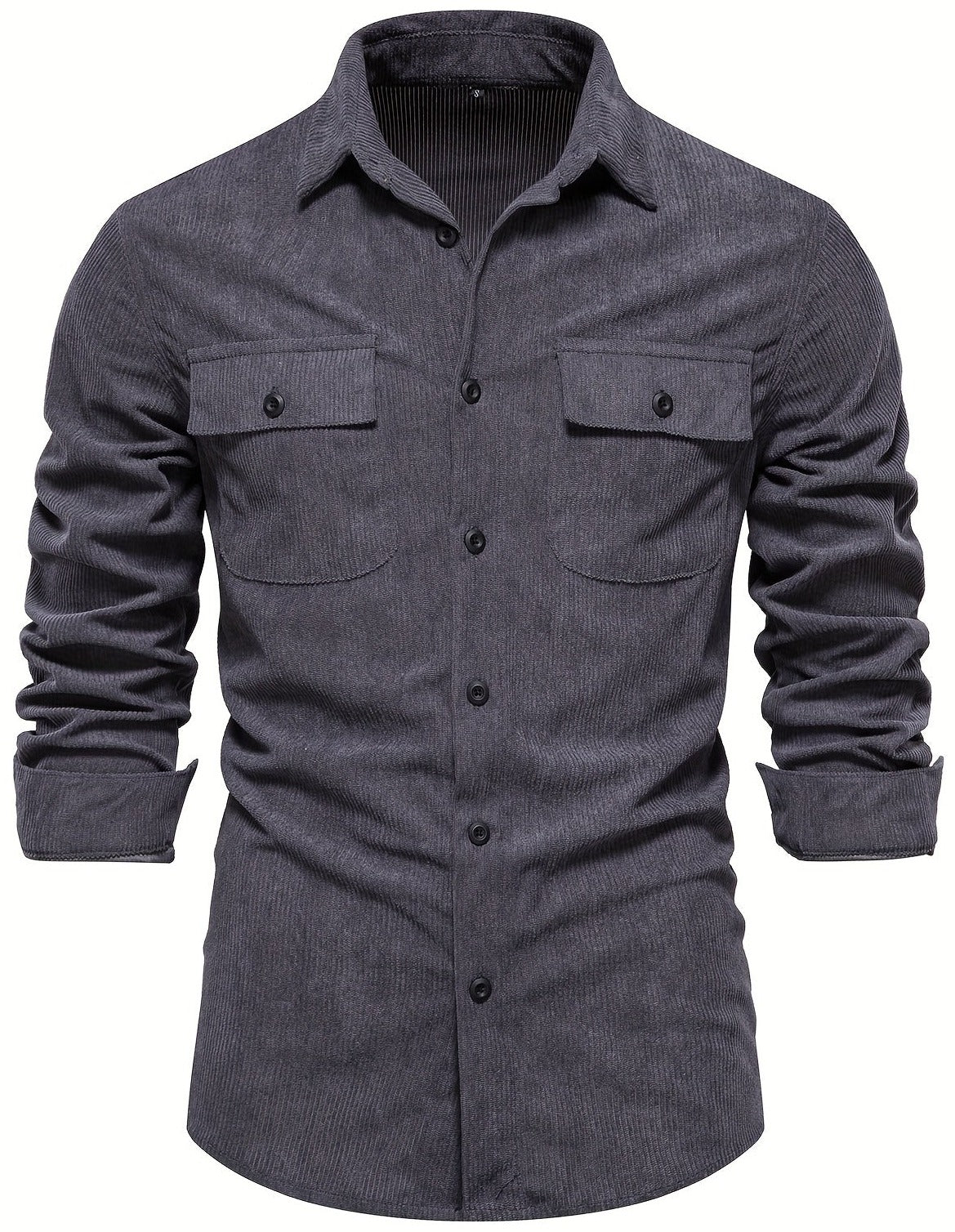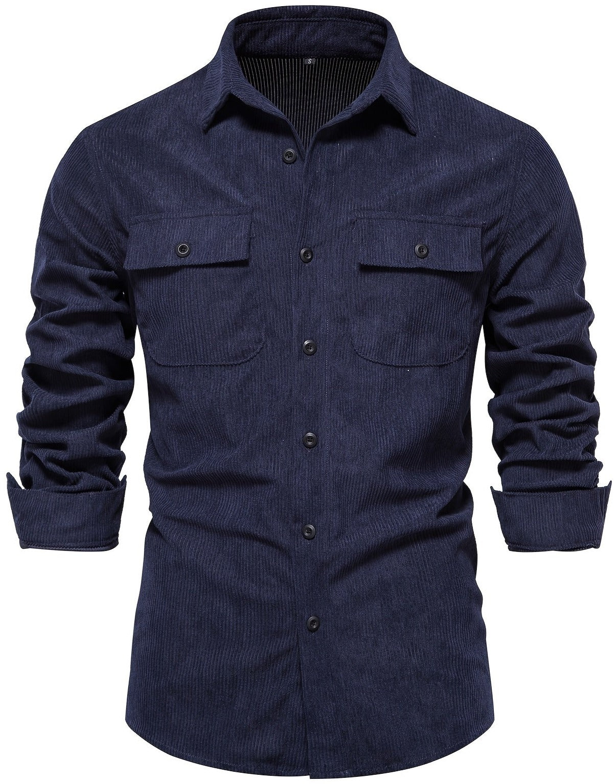 Chemise homme en velours côtelé à manches longues et double boutonnage