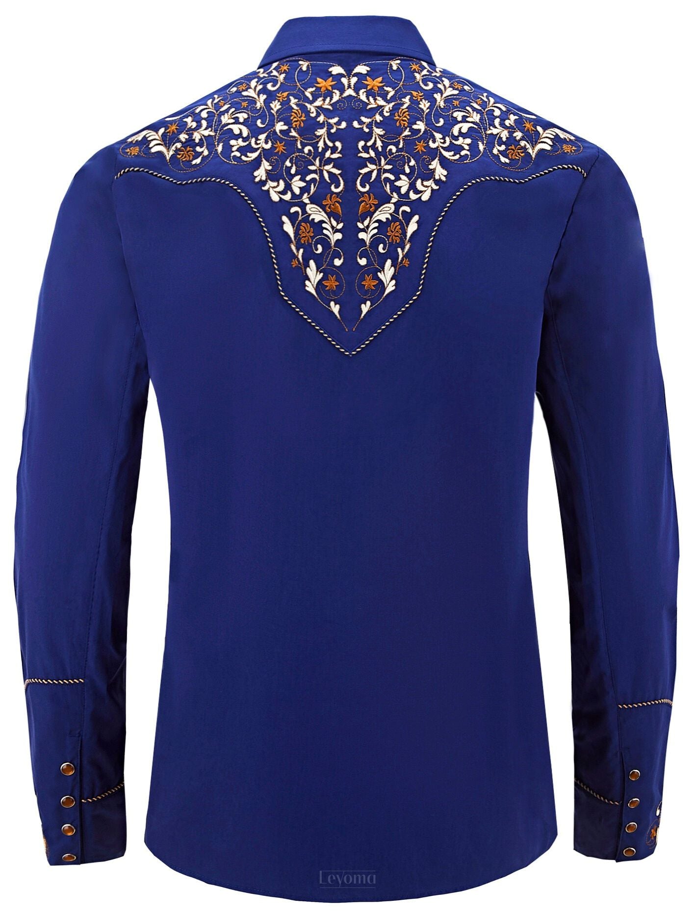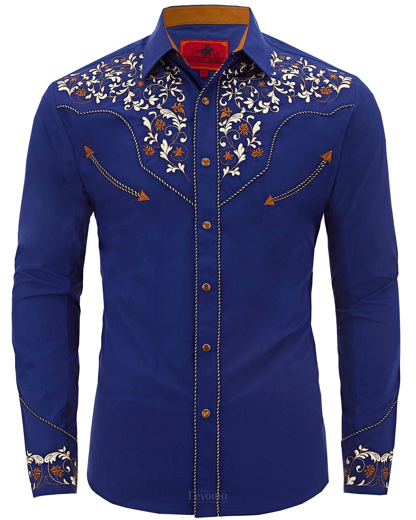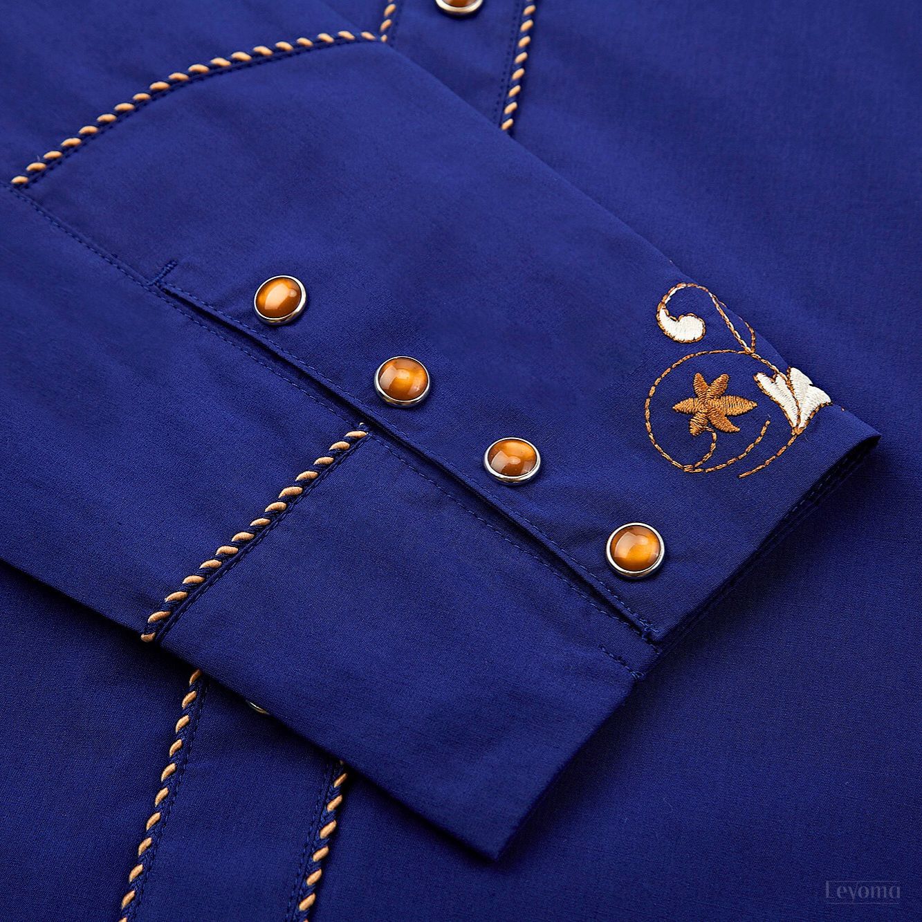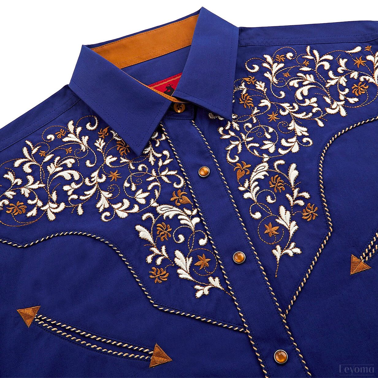 Leyoma Buy 2 Men's Embroidered Western Pearl Snap Shirts, get FREE Shipping