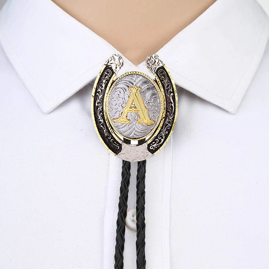 Alphabet Bolo Tie - Gold & Silver, Letter 'A'