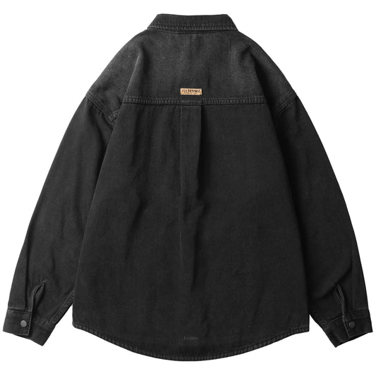 Men's Ezra Black Long Sleeve Overshirt with Utility Pocket
