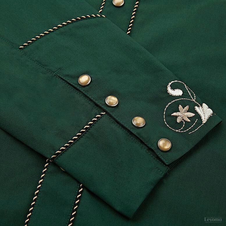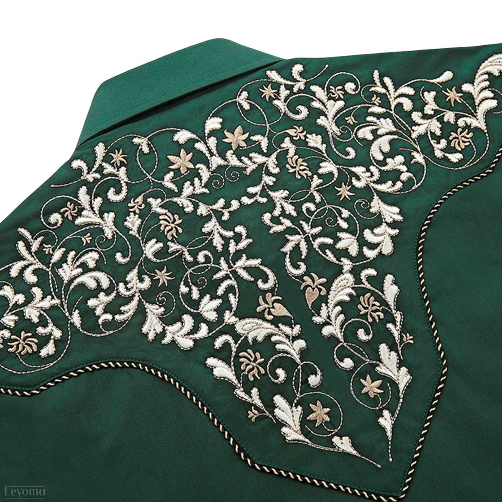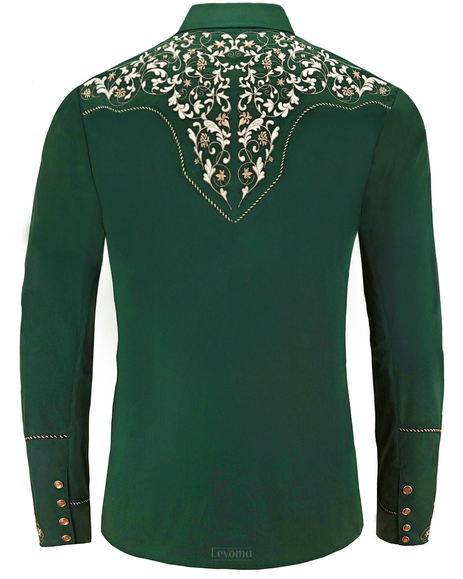Introducing Natures Vista Men’s Embroidered Western Pearl Snap Shirt, a striking green long-sleeve western dress shirt, real smiley pockets, genuine floral embroidery, and authentic pearl snaps. Designed with bold daring western style that commands any room, this shirt is made for the confident and sophisticated man. If you have a flair for the audacious, and an appreciation of that which is unique, this fearless and authentic western piece is the perfect new addition to your wardrobe.