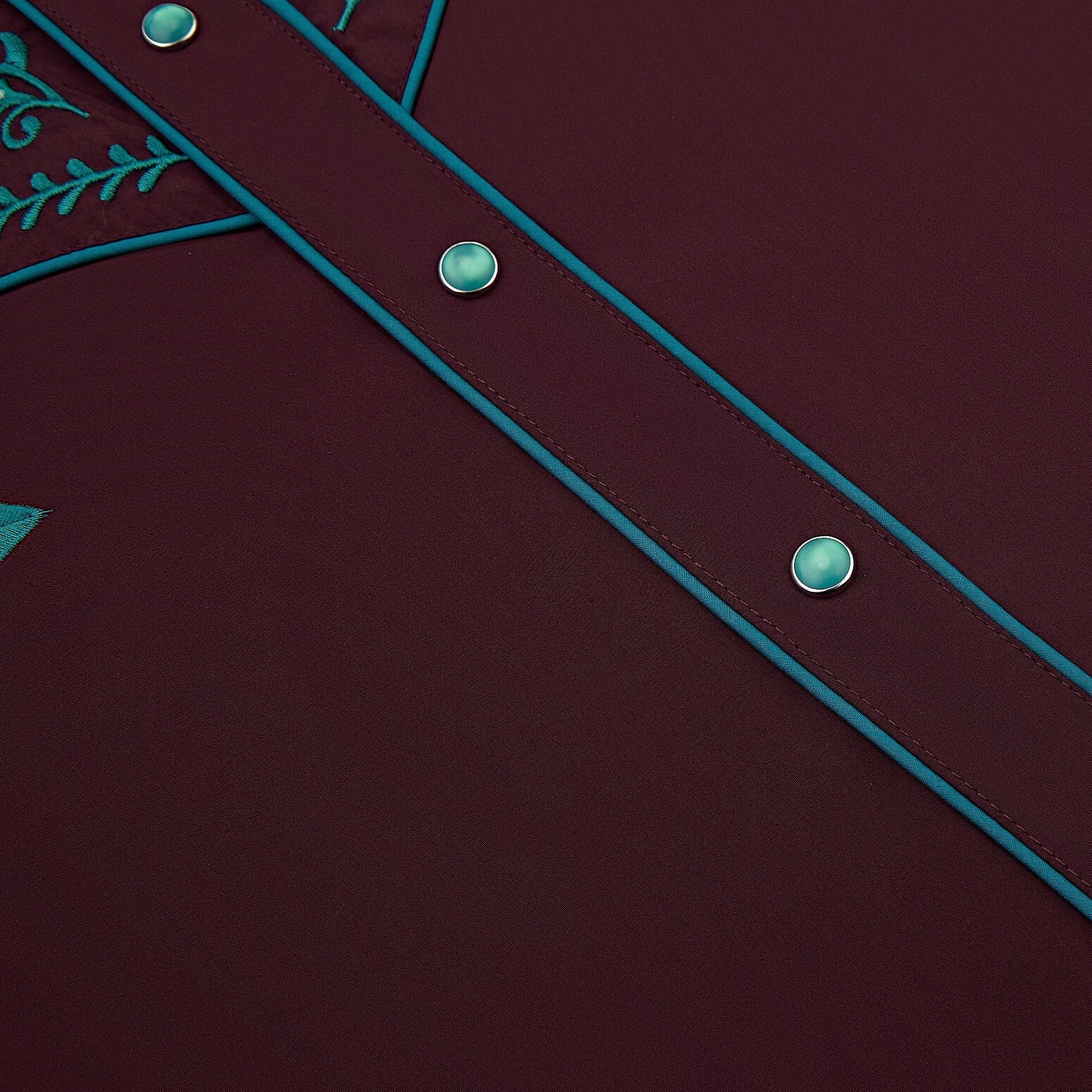 • Intricate aqua blue embroidery on western yokes and cuffs