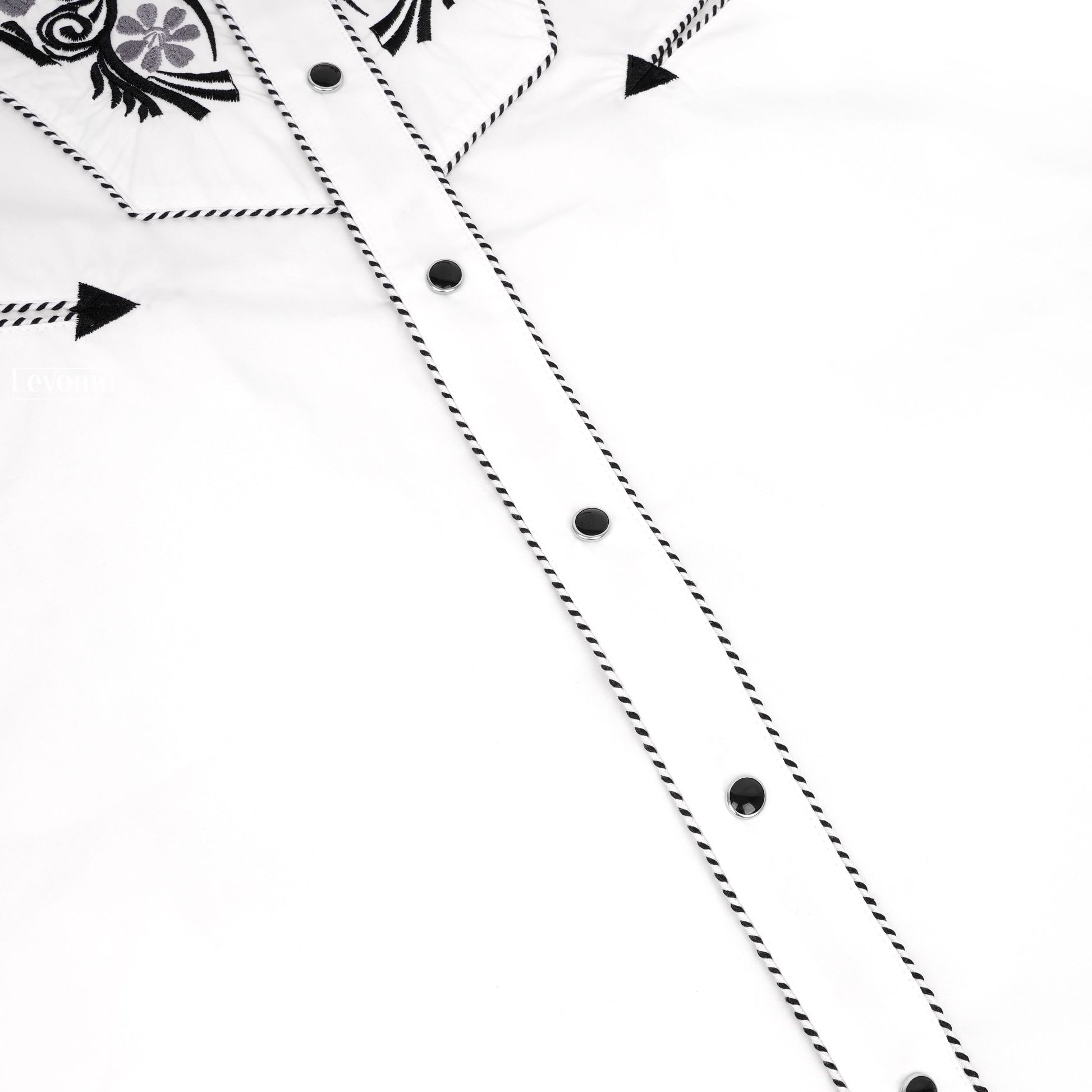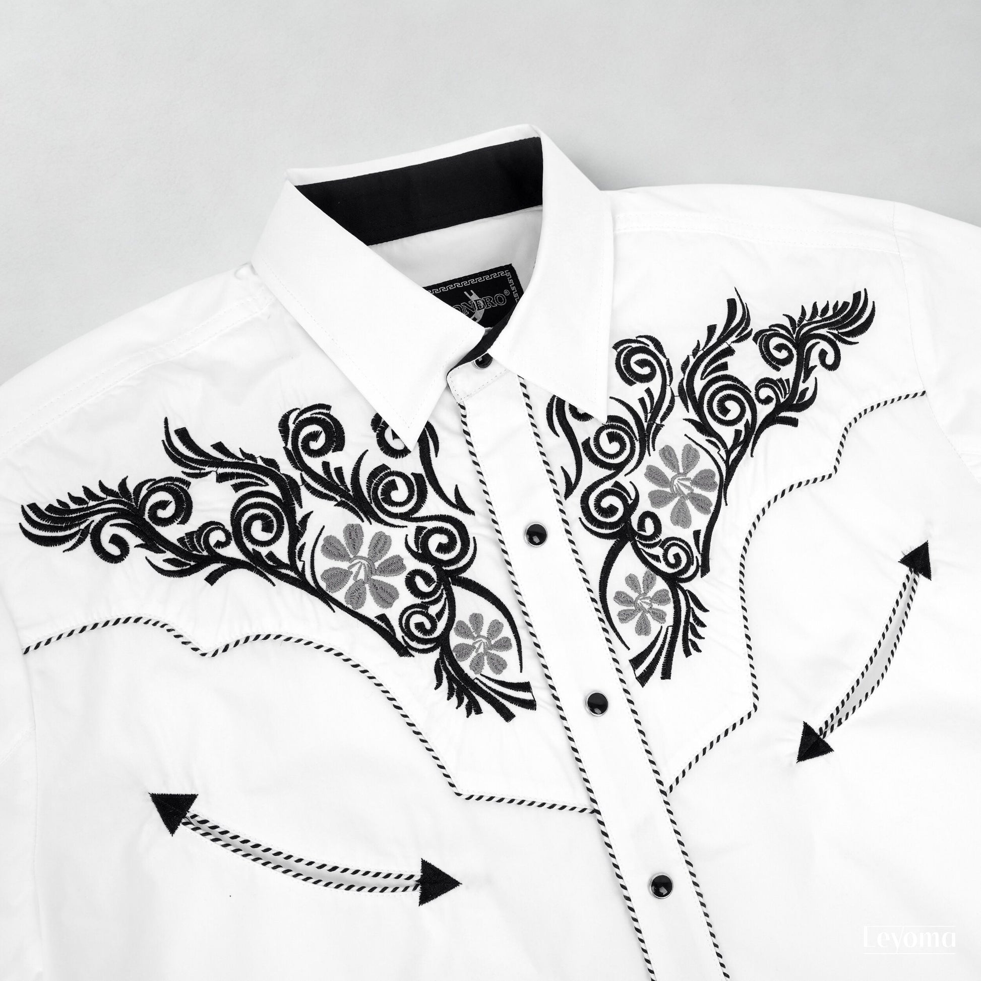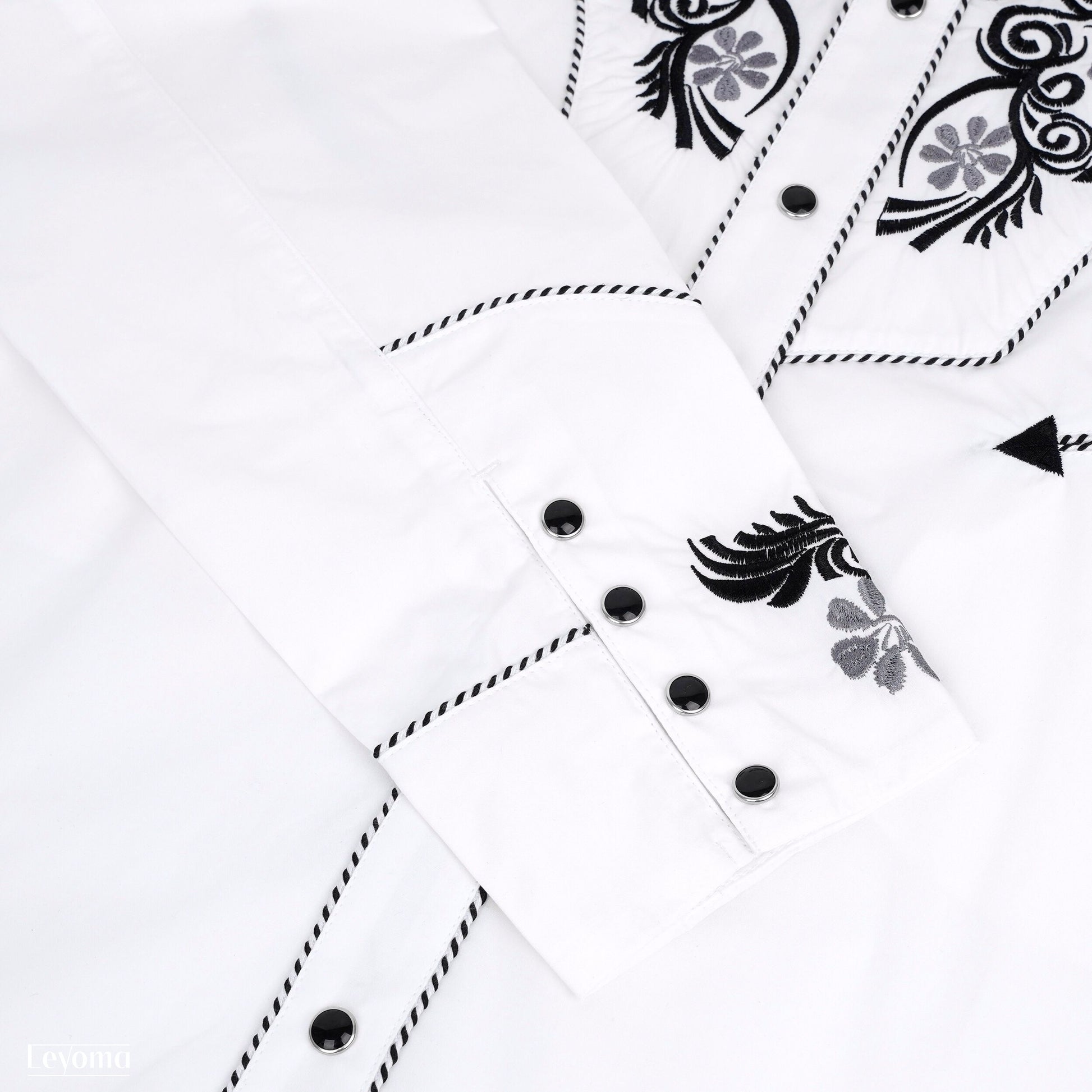Introducing Snowy Mesa Men’s Embroidered Western Pearl Snap Shirt, a striking white long-sleeve western dress shirt, real smiley pockets, genuine floral embroidery, and authentic pearl snaps. Designed with bold daring western style that commands any room, this shirt is made for the confident and sophisticated man. If you have a flair for the audacious, and an appreciation of that which is unique, this fearless and authentic western piece is the perfect new addition to your wardrobe.