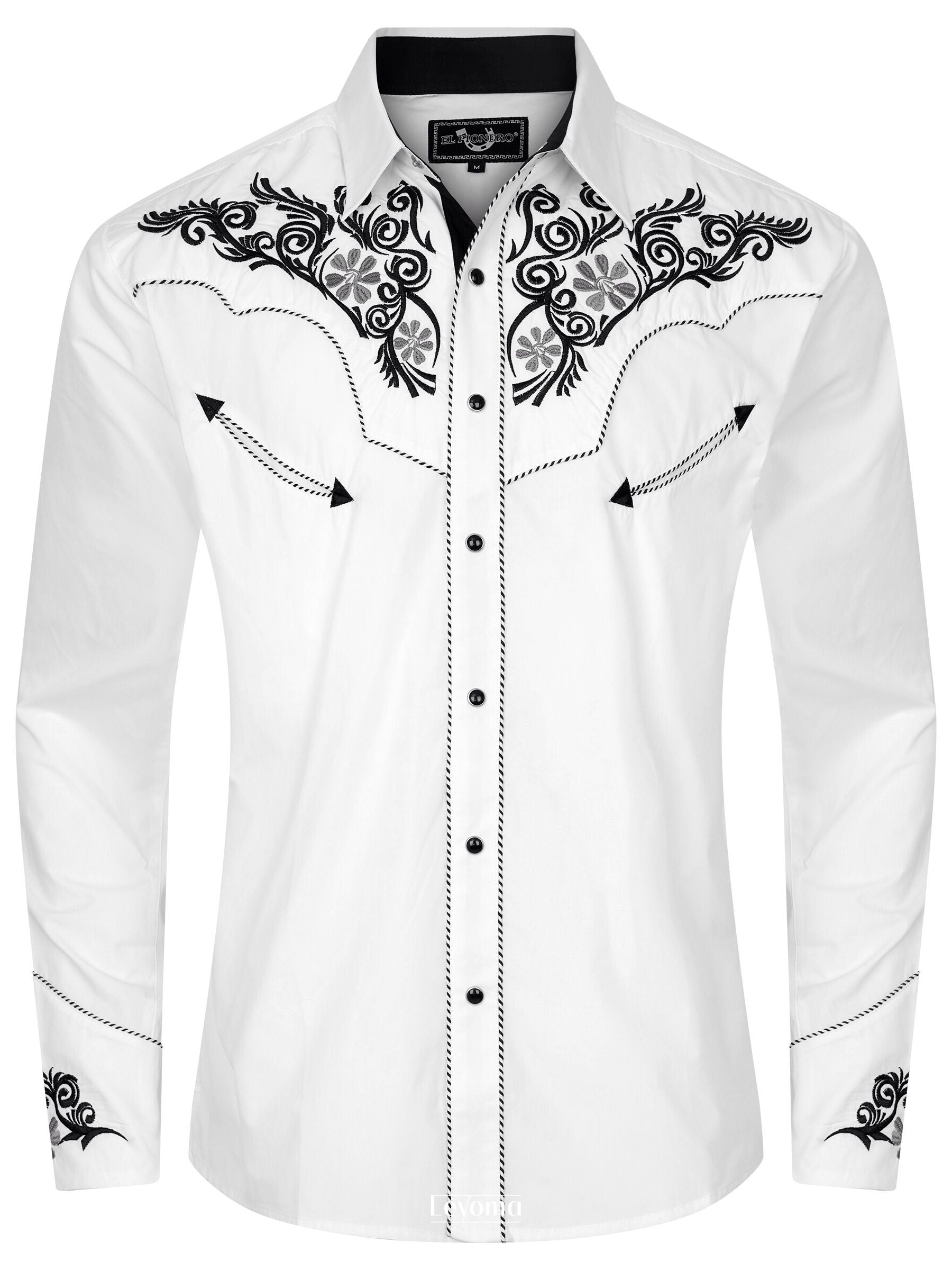 Leyoma Buy 2 Men's Embroidered Western Pearl Snap Shirts, get FREE Shipping