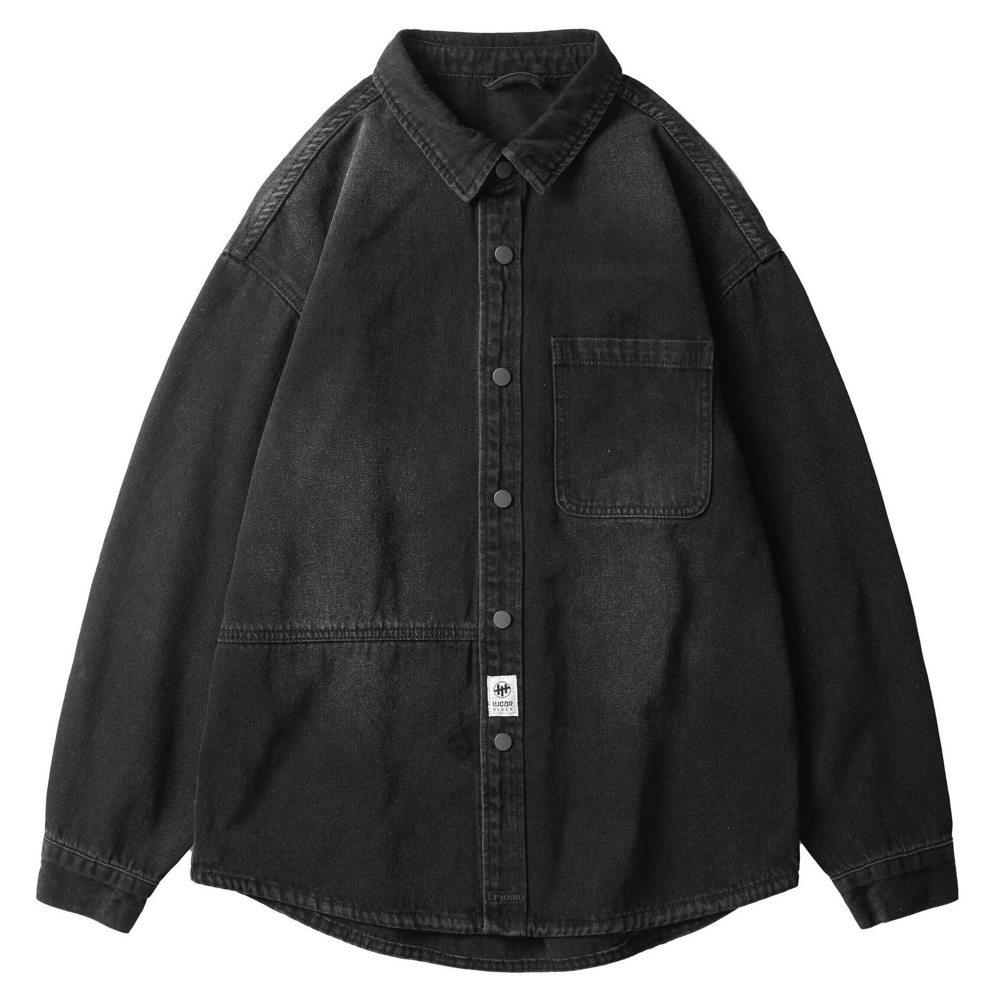 Men's Ezra Black Long Sleeve Overshirt with Utility Pocket