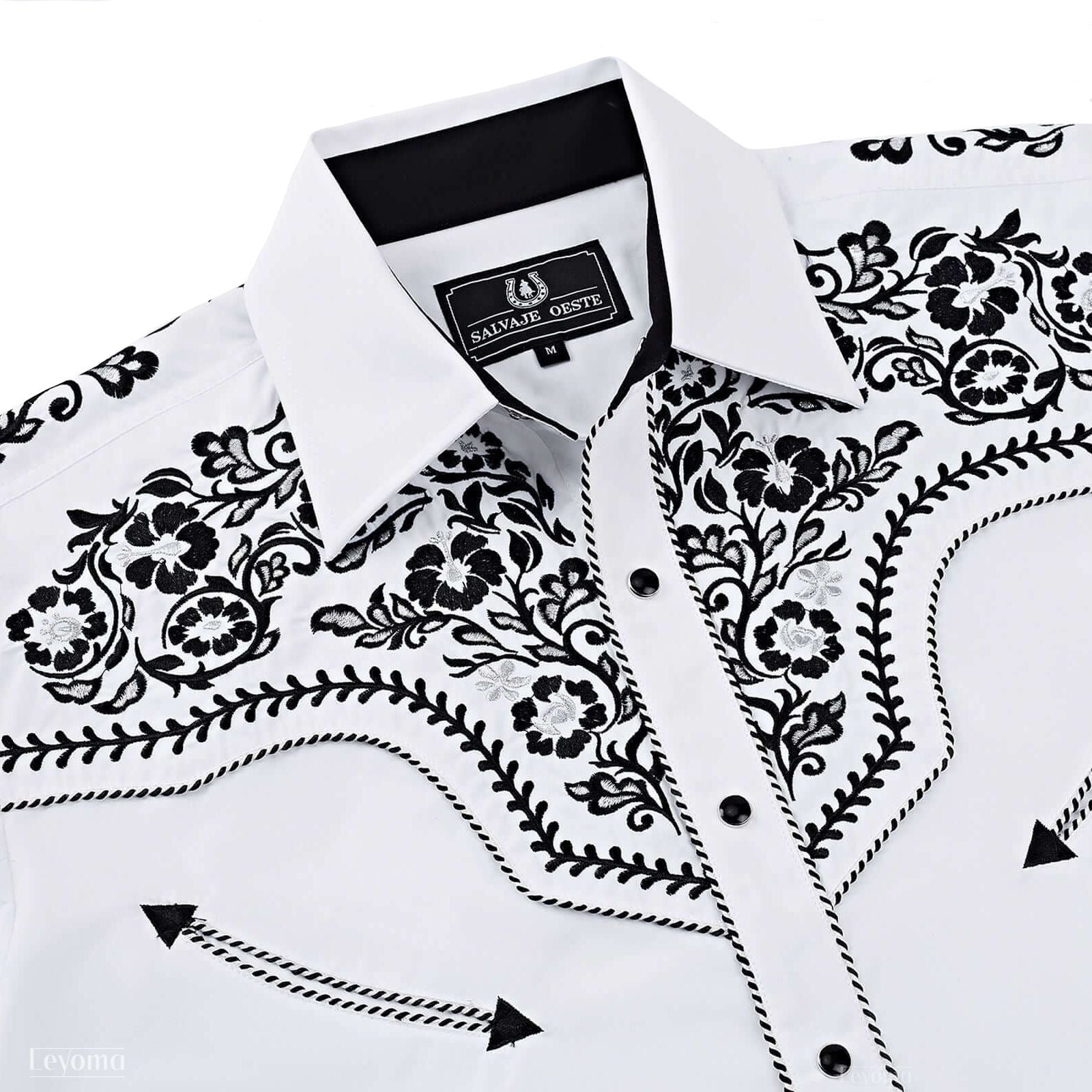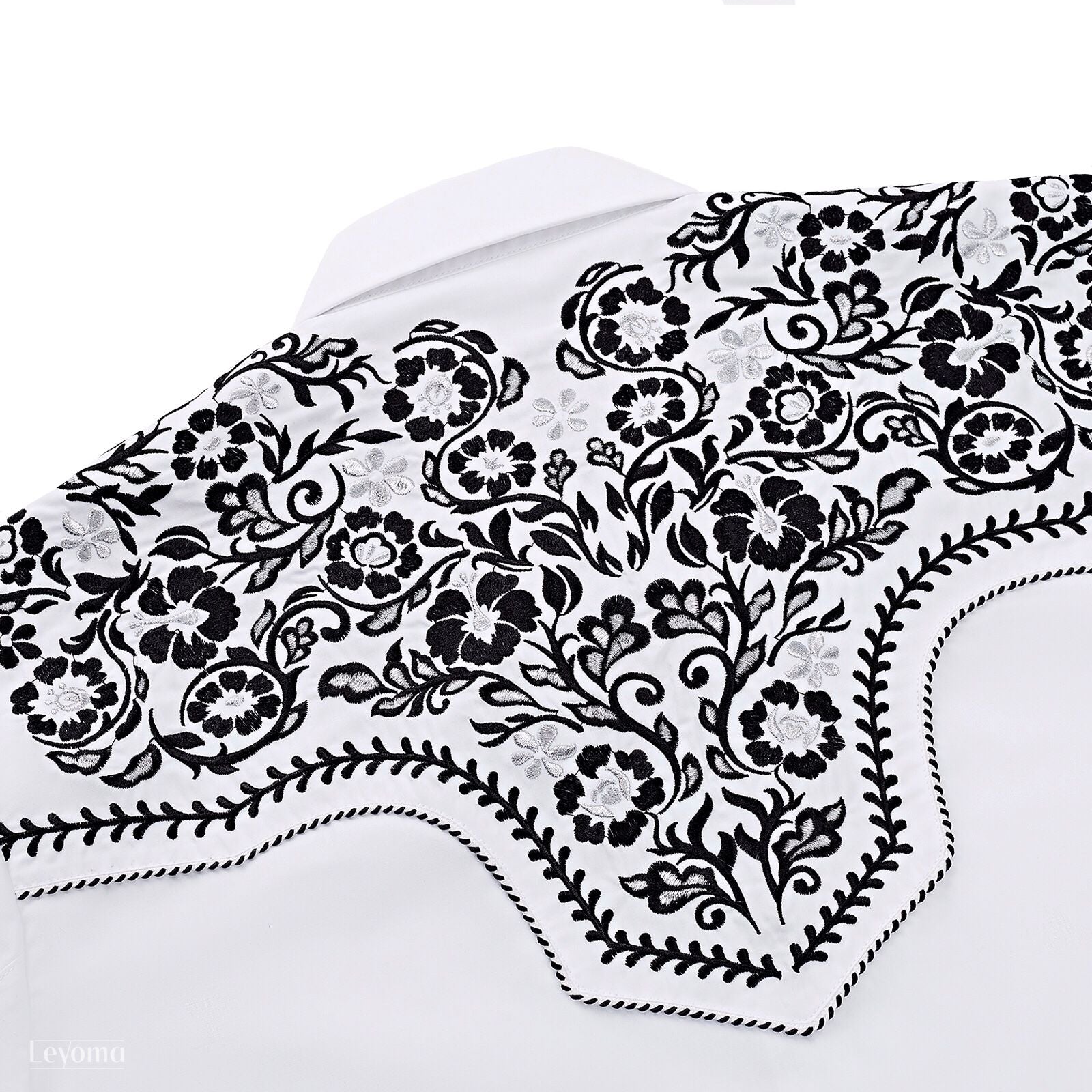 Introducing Clean-cut White Men’s Embroidered Western Pearl Snap Shirt, a striking white long-sleeve western dress shirt with real smiley pockets, genuine floral embroidery, and authentic pearl snaps. Designed with bold daring western style that commands any room, this shirt is made for the confident and sophisticated man. If you have a flair for the audacious, and an appreciation of that which is unique, this fearless and authentic western piece is the perfect new addition to your wardrobe.