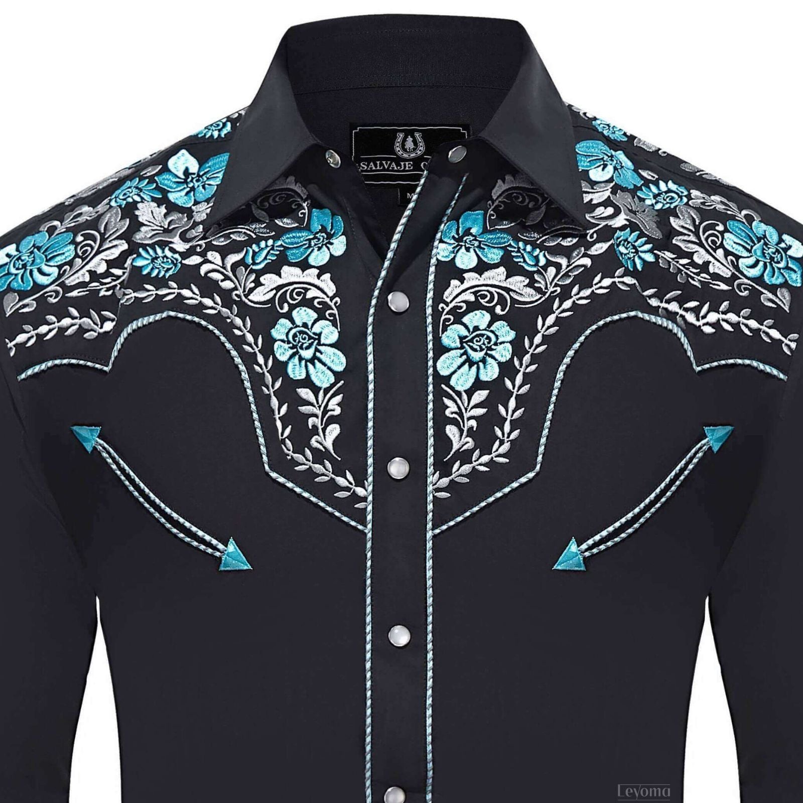 Introducing Golfo de Mexico Men’s Embroidered Western Pearl Snap Shirt, a striking black long-sleeve western dress shirt with real smiley pockets, genuine floral embroidery, and authentic pearl snaps. Designed with bold daring western style that commands any room, this shirt is made for the confident and sophisticated man. If you have a flair for the audacious, and an appreciation of that which is unique, this fearless and authentic western piece is the perfect new addition to your wardrobe.