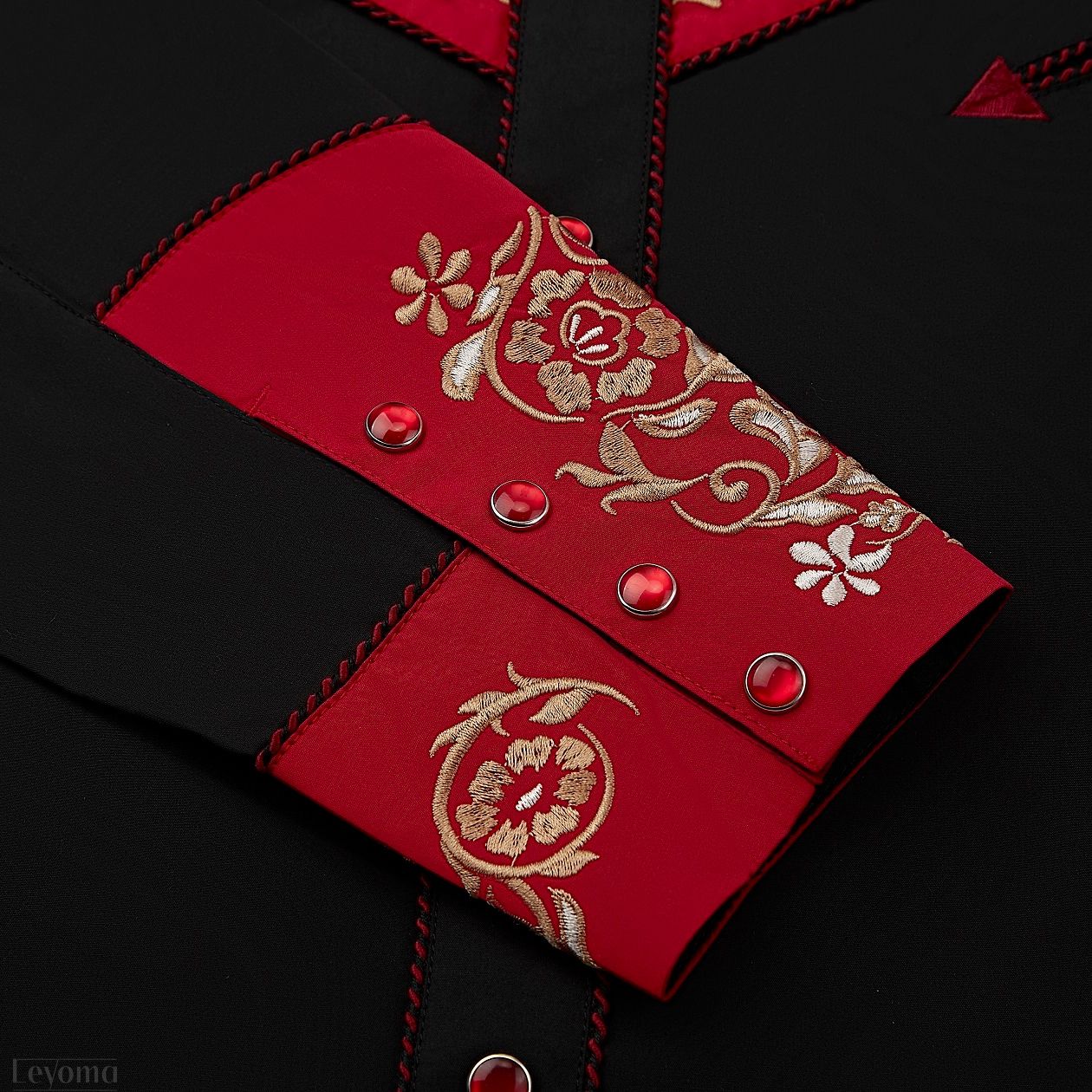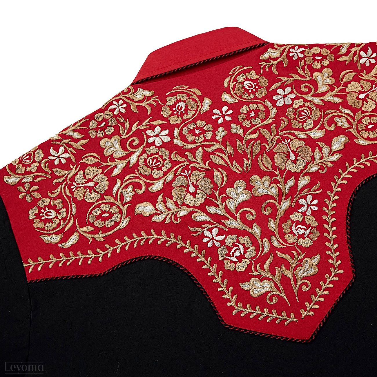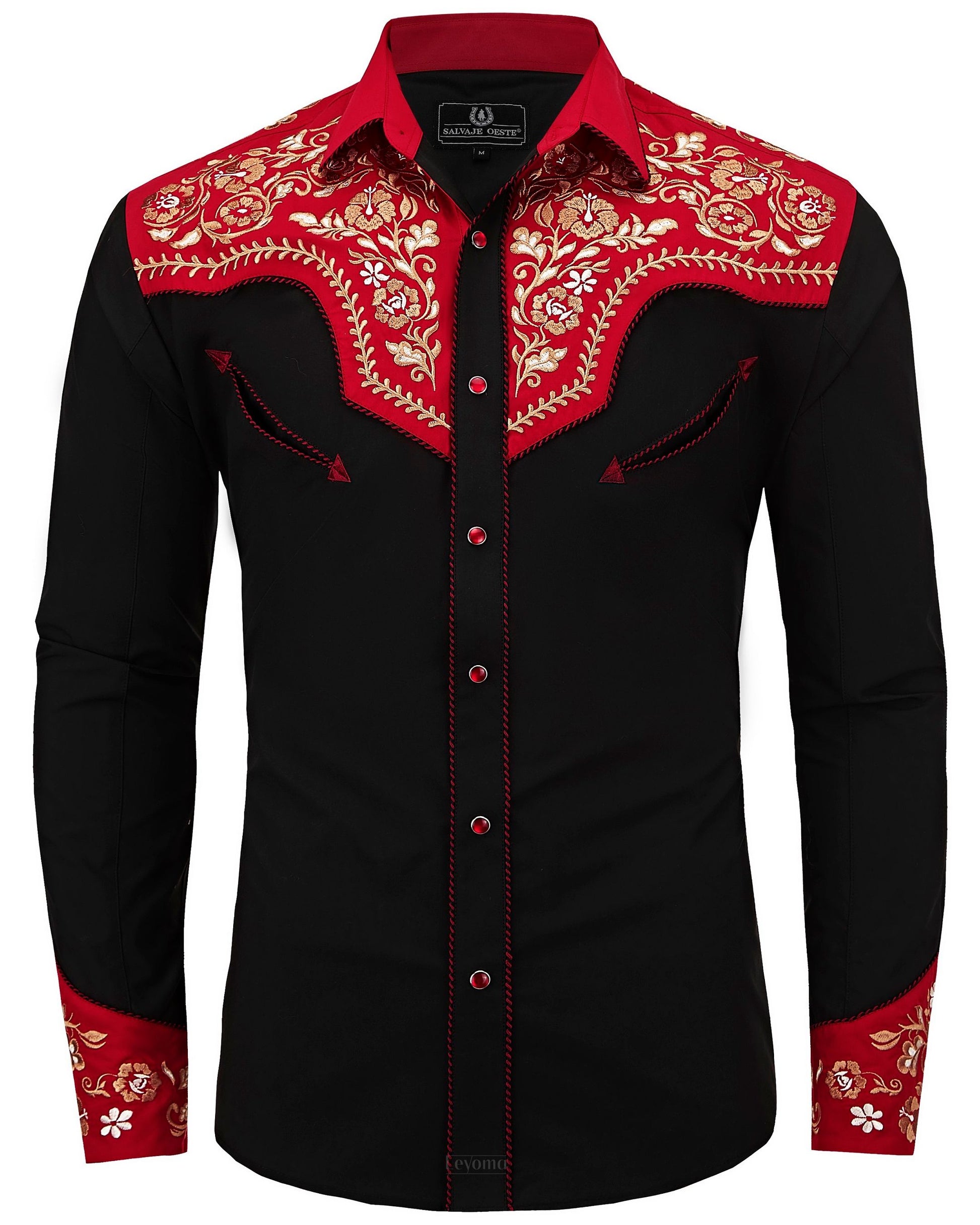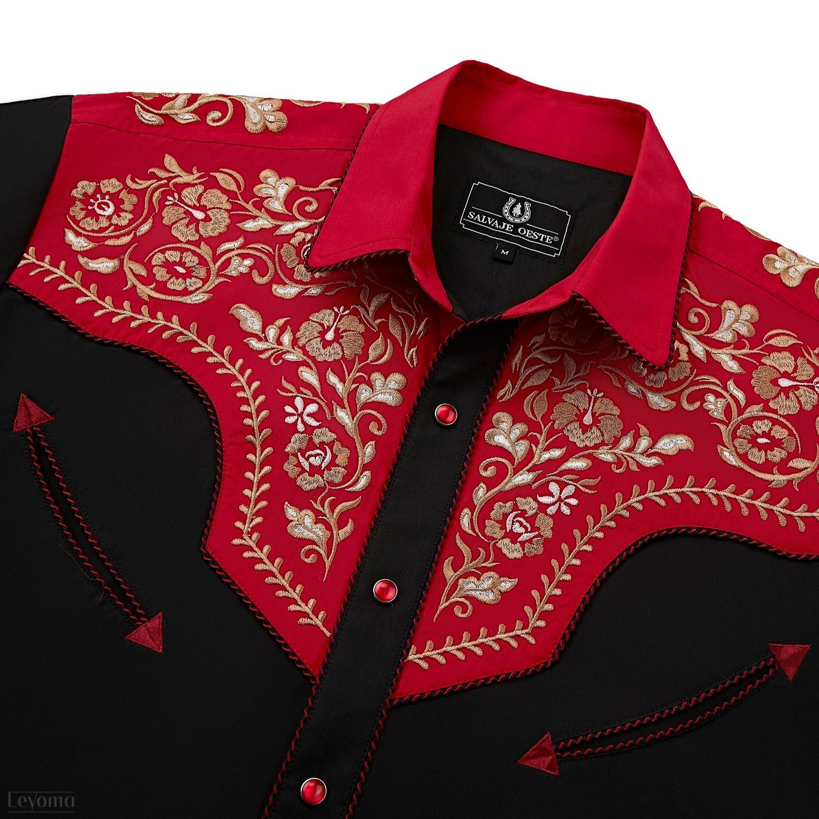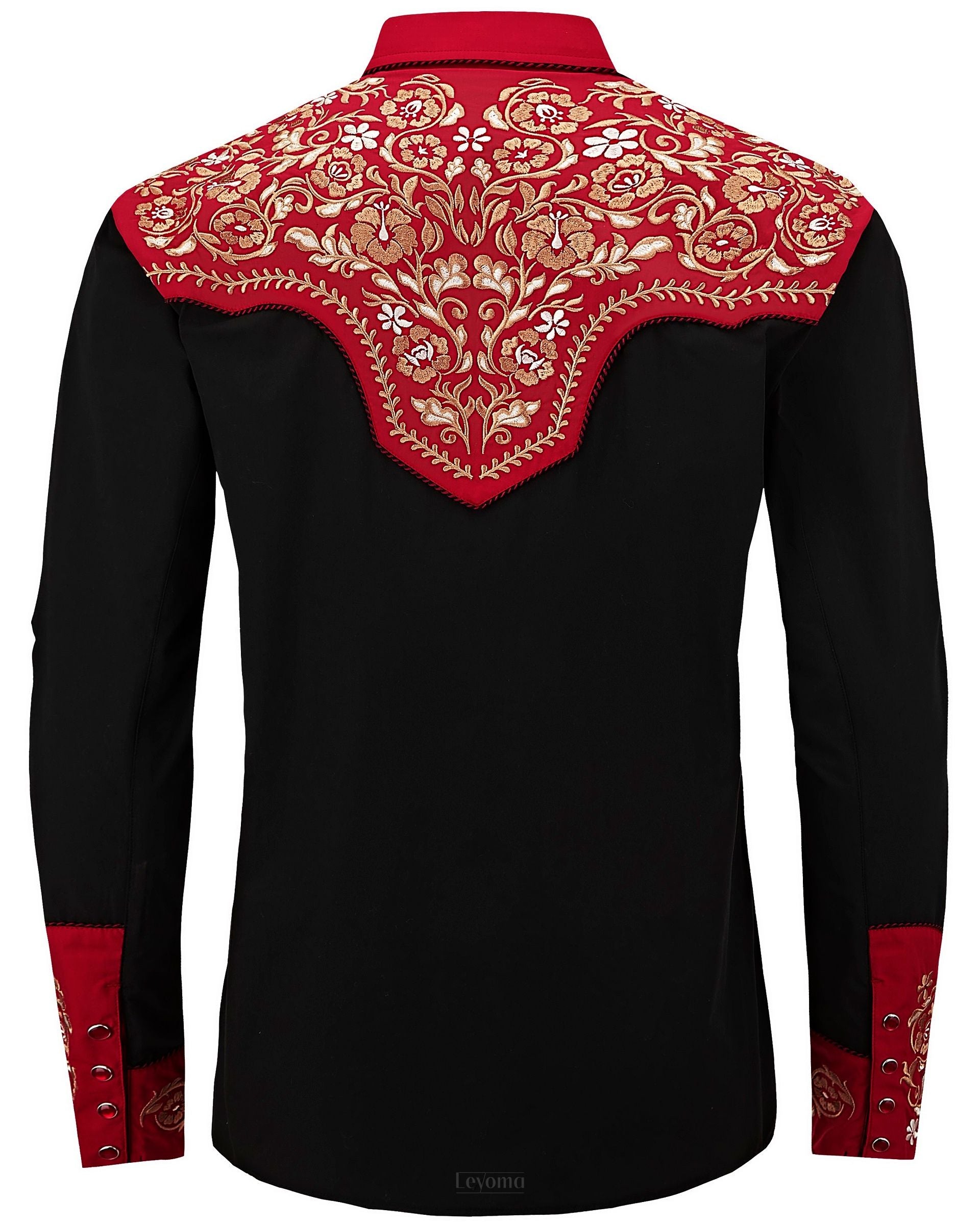 Introducing The Inferno Outlaw Men’s Embroidered Western Pearl Snap Shirt, a striking black long-sleeve western shirt with red yokes, real smiley pockets, genuine floral embroidery, and authentic pearl snaps. Designed with bold daring western style that commands any room, this shirt is made for the confident and sophisticated man. If you have a flair for the audacious, and an appreciation of that which is unique, this fearless and authentic western piece is the perfect new addition to your wardrobe.