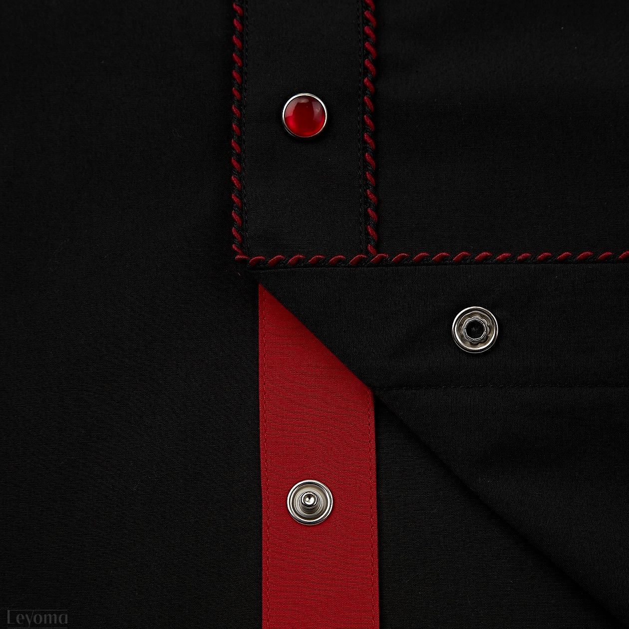 • Genuine red pearl snap buttons, including 4-snap cuffs