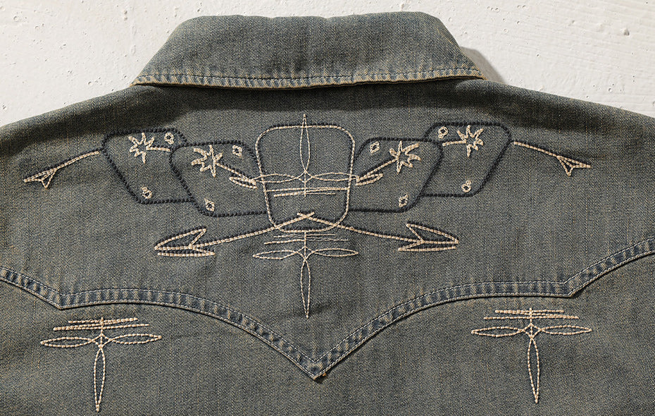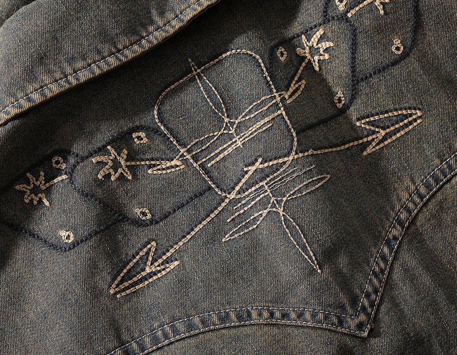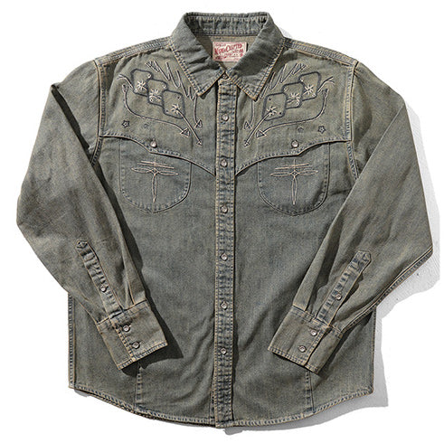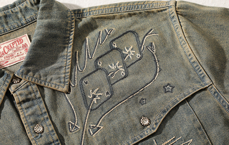 Vintage grit meets modern craftsmanship in this heavyweight western shirt — built from high-density cotton denim and detailed with rich embroidery and aged washing. With a sharp fit that flatters most body types, this is your go-to for layering, statement styling, and everything in between.