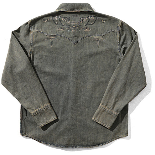 Men's Maverick Embroidered Washed Denim Western Long Sleeve Shirt