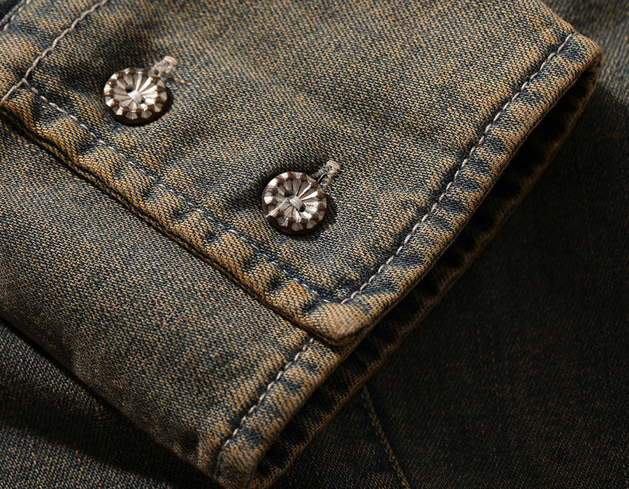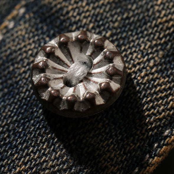 • Custom rust-treated snap buttons for an authentic vintage touch