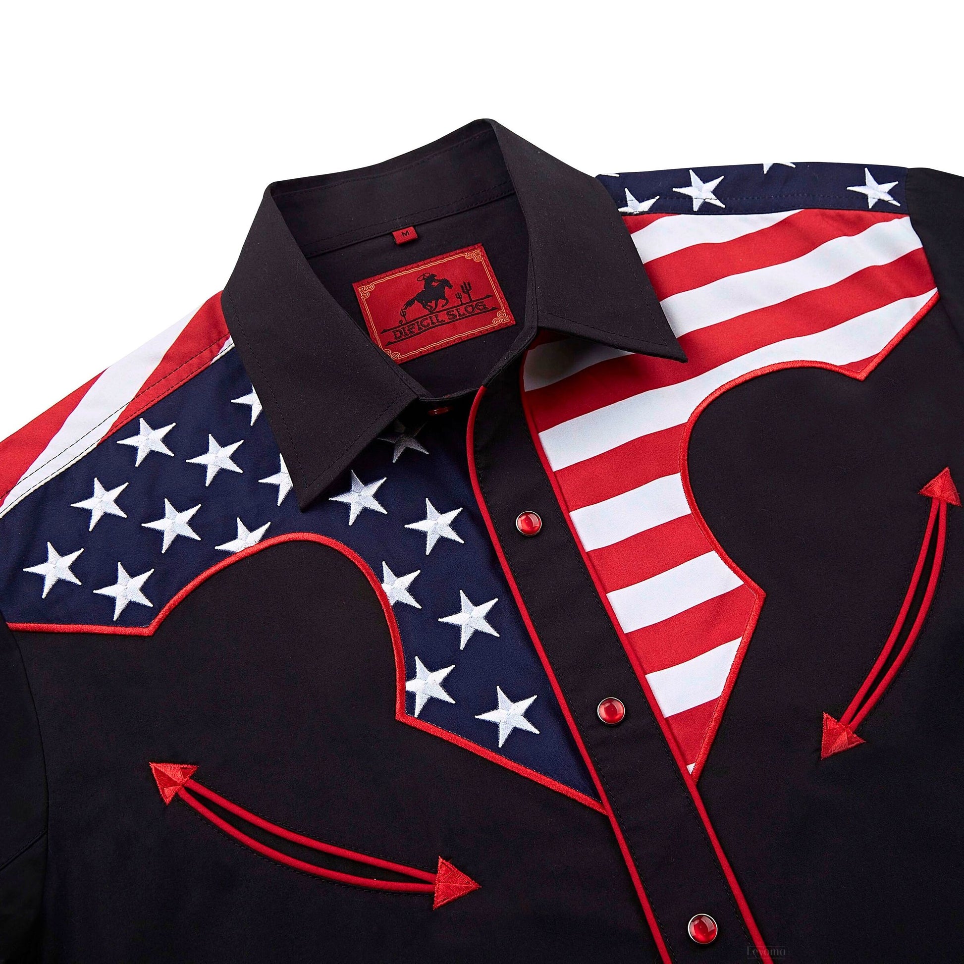 Stars & Stripes Black Men's Embroidered Western Pearl Snap Shirt