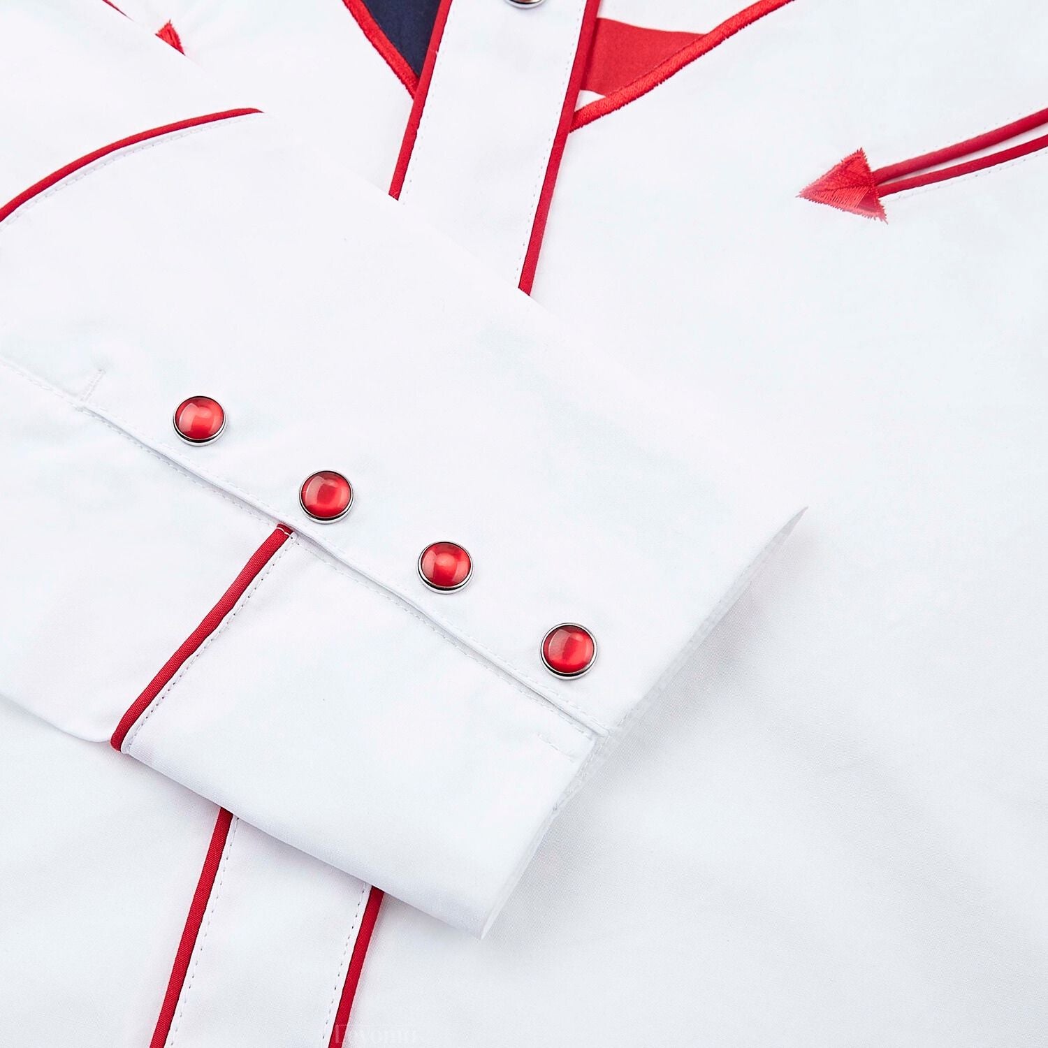 Stars & Stripes White Men's Embroidered Western Pearl Snap Shirt