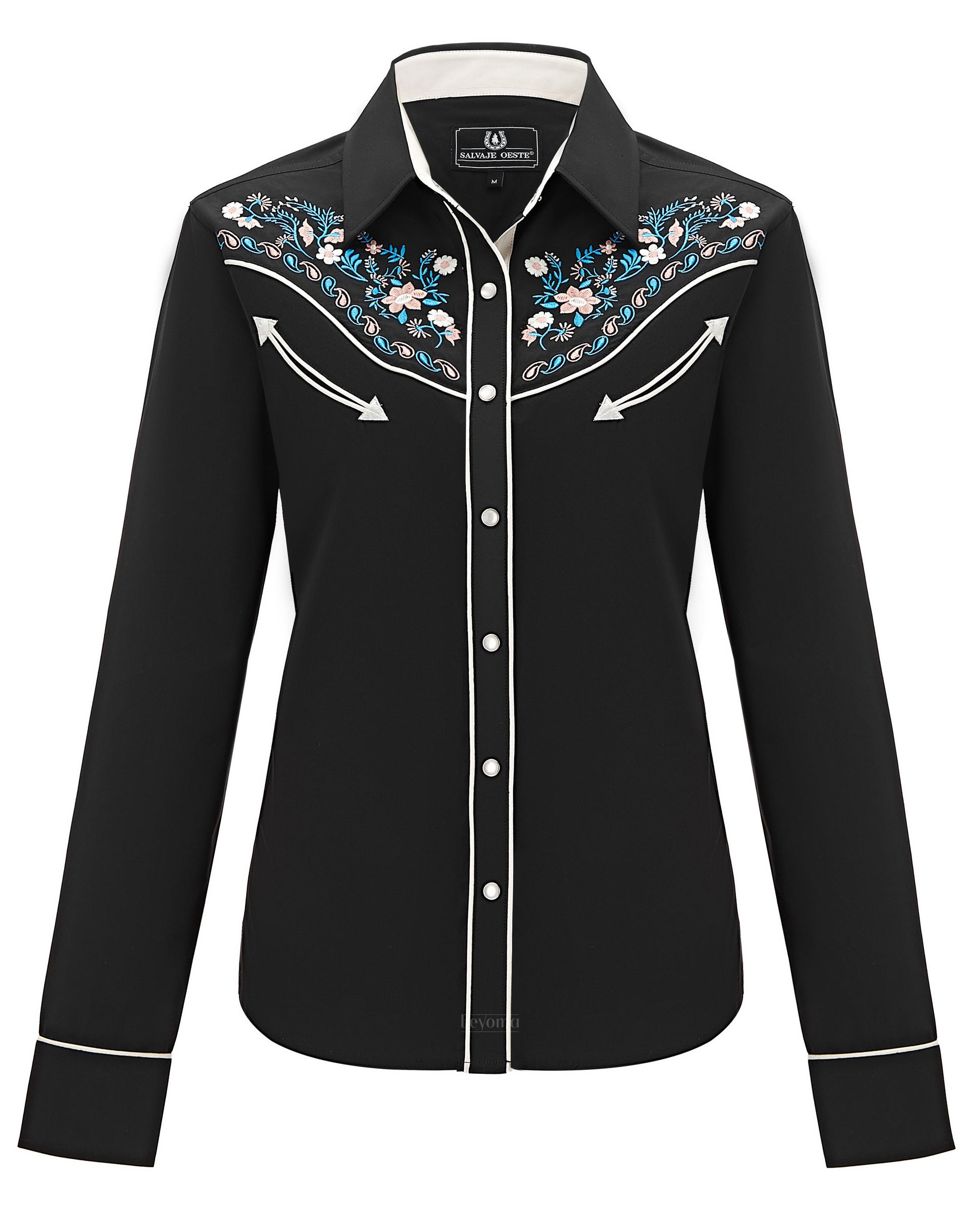 Saddle up in style with Salvaje Oeste’s brand new Women's Embroidered Western Pearl Snap Shirt. Country-western fashion is HOT in 2025, and this beautifully stylish apparel is just in time. For my ladies that are big into adventures, always having fun, and a little romance- we offer a shirt that’ll undoubtedly add some brand new flair to your chic western ensemble.