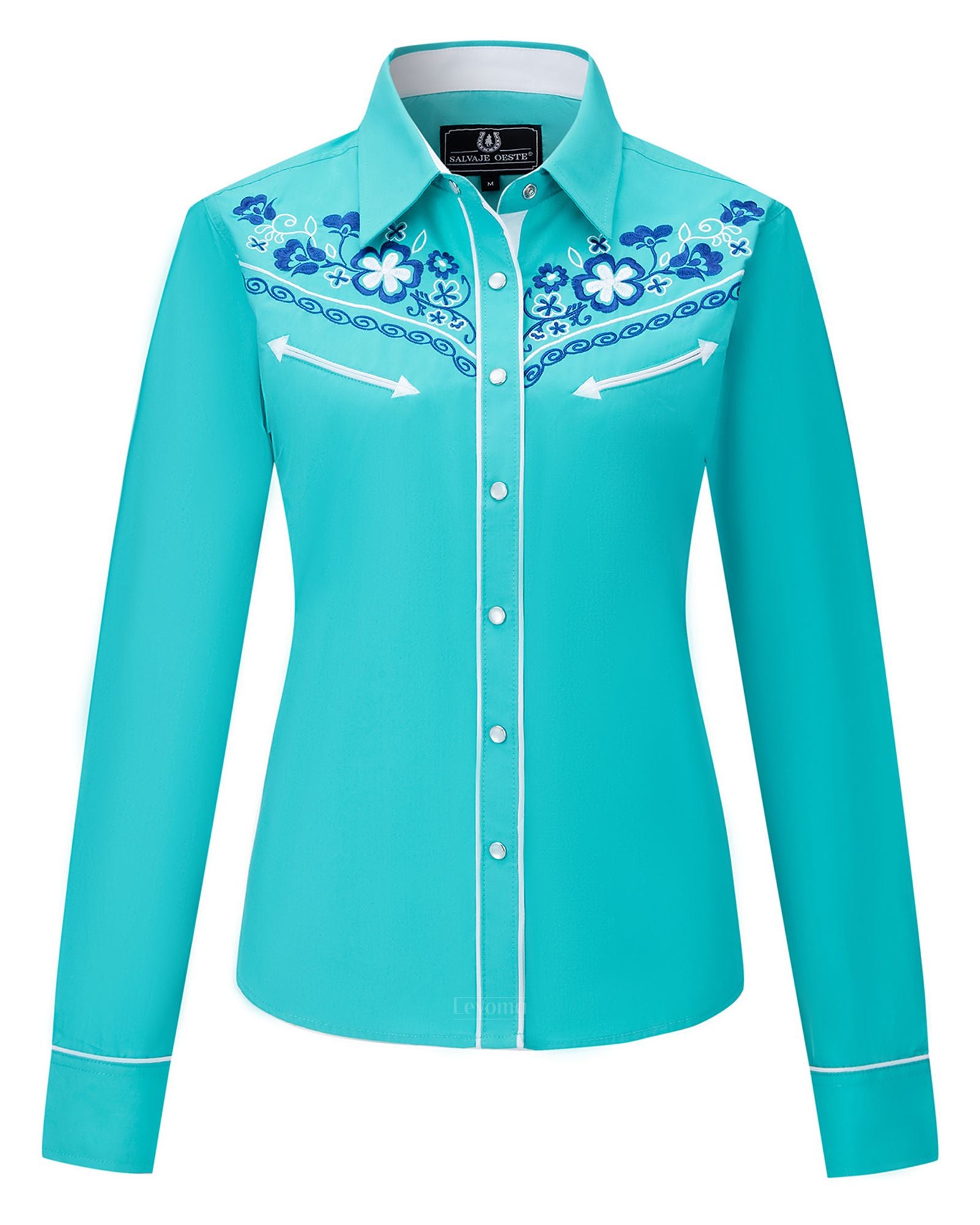 Saddle up in style with Salvaje Oeste’s brand new Women's Embroidered Western Pearl Snap Shirt. Country-western fashion is HOT in 2025, and this beautifully stylish apparel is just in time. For my ladies that are big into adventures, always having fun, and a little romance- we offer a shirt that’ll undoubtedly add some brand new flair to your chic western ensemble.