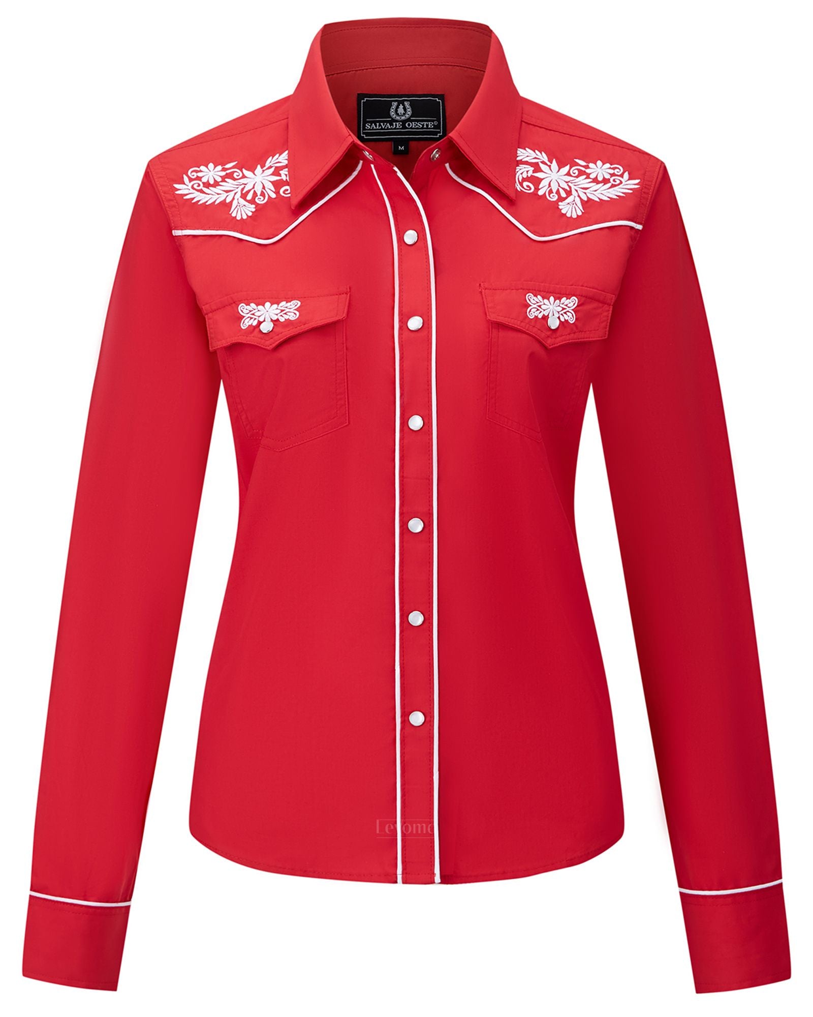 Saddle up in style with Salvaje Oeste’s brand new Women's Embroidered Western Pearl Snap Shirt. Country-western fashion is HOT in 2025, and this beautifully stylish apparel is just in time. For my ladies that are big into adventures, always having fun, and a little romance- we offer a shirt that’ll undoubtedly add some brand new flair to your chic western ensemble.